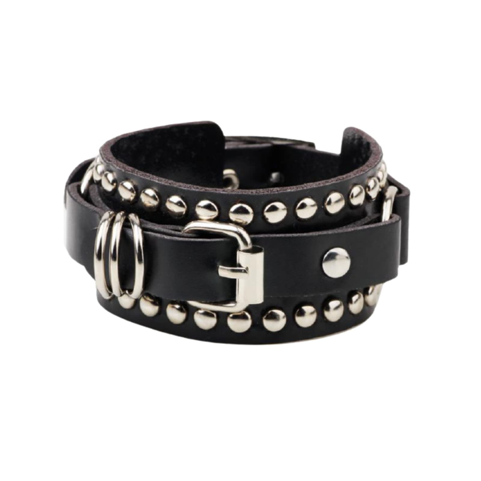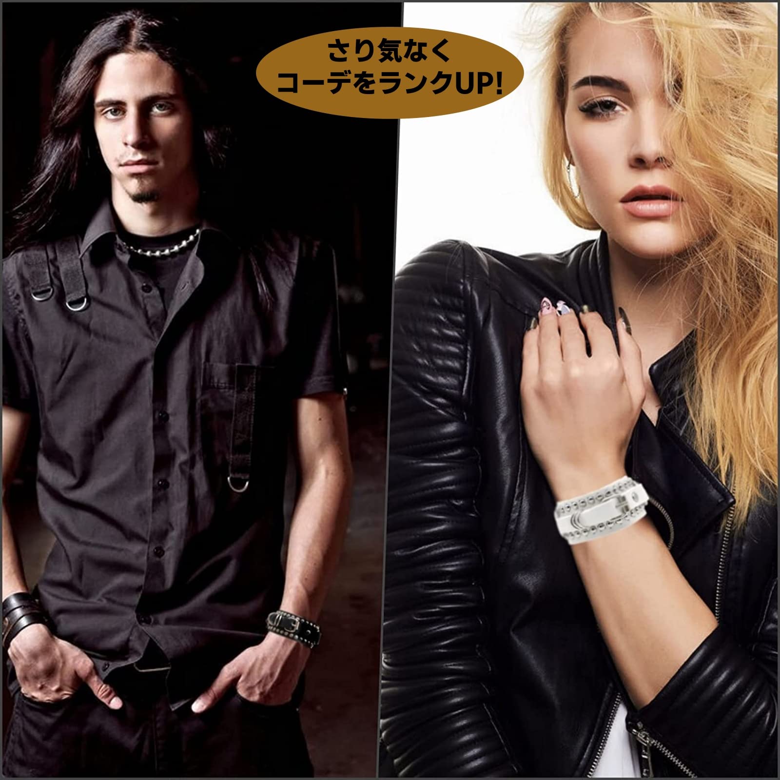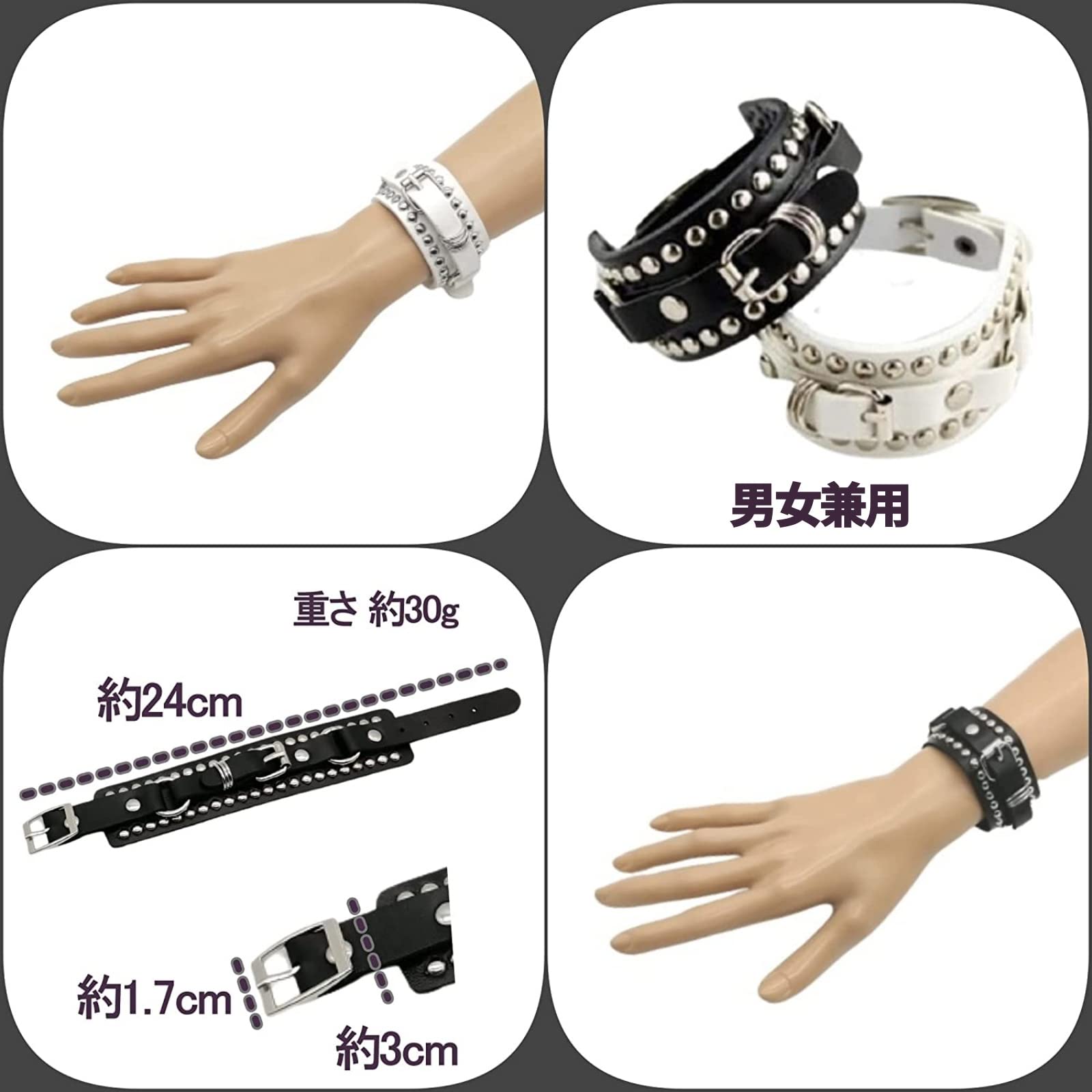 [APOSITV] ブレスレット スタッズ ベルト バングル ロック メタル パンク 黒 白 バックル 男女兼用