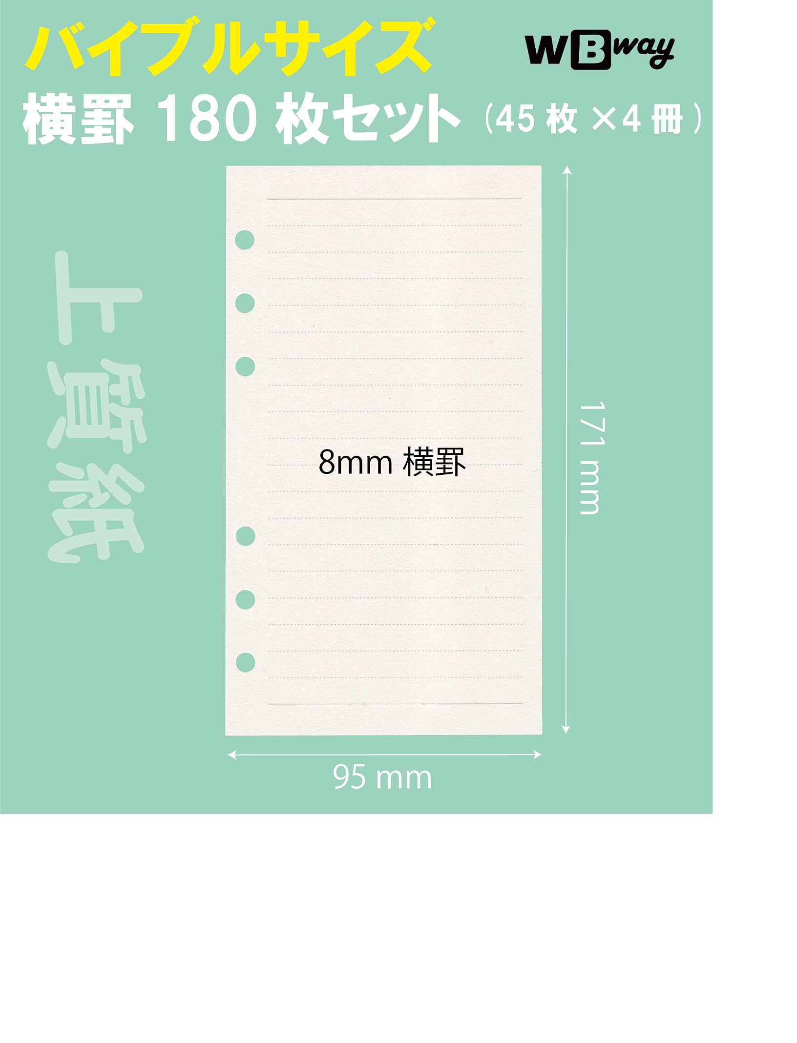 手帳リフィル バイブルサイズ 横罫 【4冊セット】 180枚 6穴 システム手帳 メモ帳 リフィル バイブル 6穴 レフィル 中身 A6 (横罫)