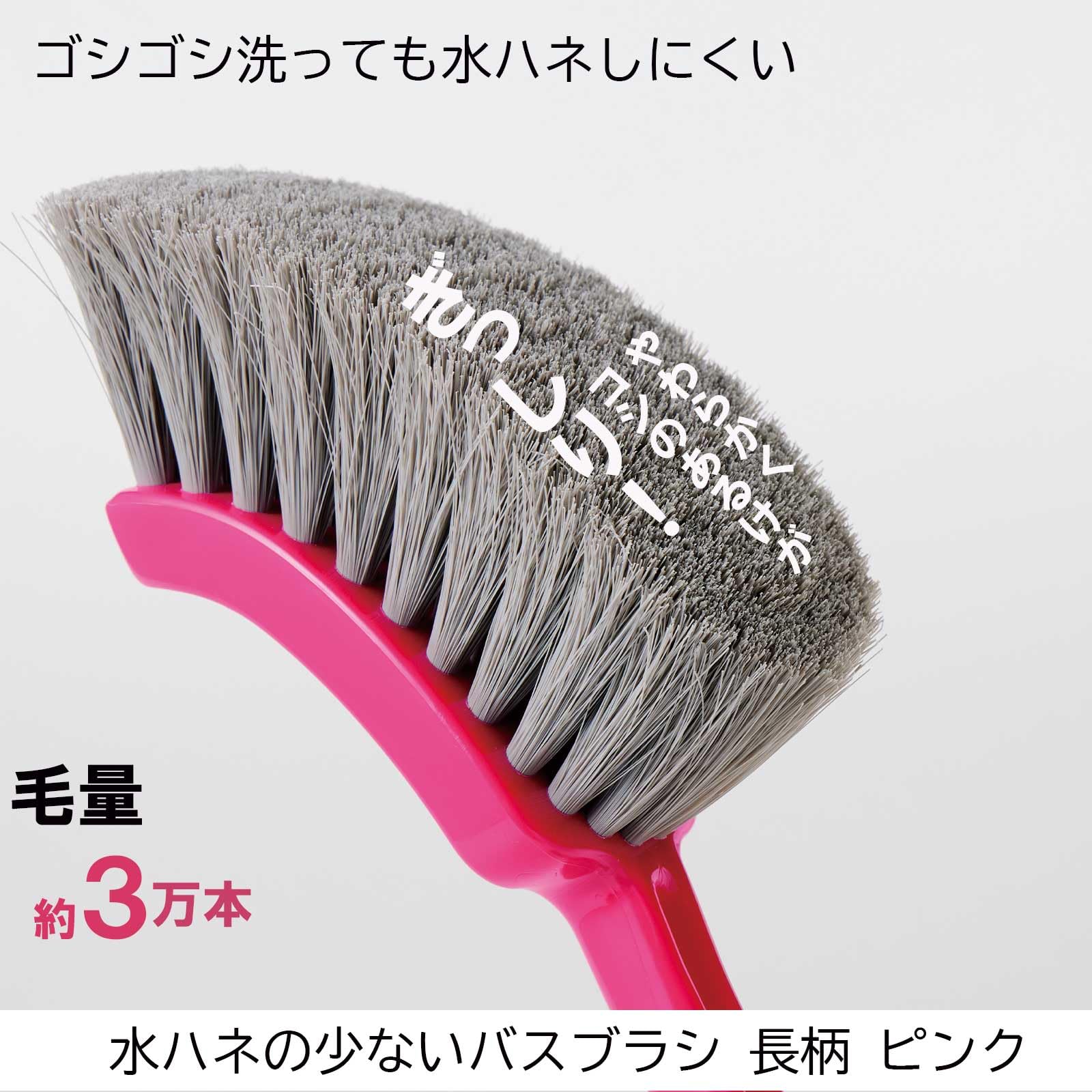 水ハネの少ないバスブラシ 長柄 ピンク 日本製 柄付き ロングタイプ ゴム クリーナー お風呂 浴室 浴槽 お掃除 清掃 床 カベ タイル 天井 水垢 湯垢 黒ずみ カビ 落とし 背中 ハンド ポリッシャー 65103400