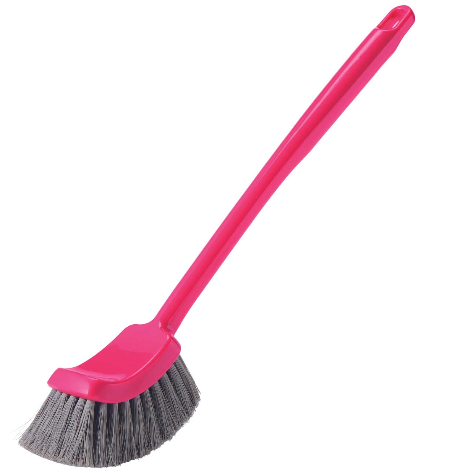 【在庫処分】水ハネの少ないバスブラシ 長柄 ピンク 日本製 柄付き ロングタイプ ゴム クリーナー お風呂 浴室 浴槽 お掃除 清掃 床 カベ タイル 天井 水垢 湯垢 黒ずみ カビ 落とし 背中 ハンド ポリッシャー 65103400 | GIGATERA