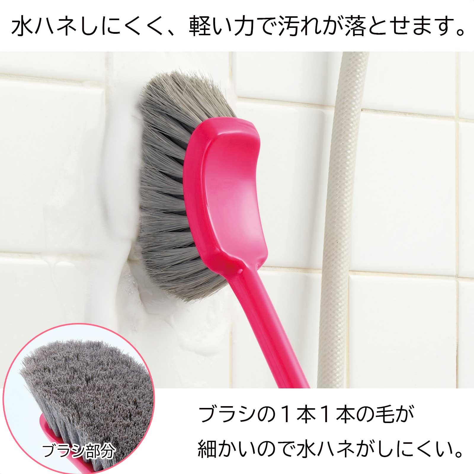 ブラシ部分に細い腰のある繊維を使用しているため、ブラシがやわらかくコシがあるので浴槽や風呂床もキズつけにくい。
