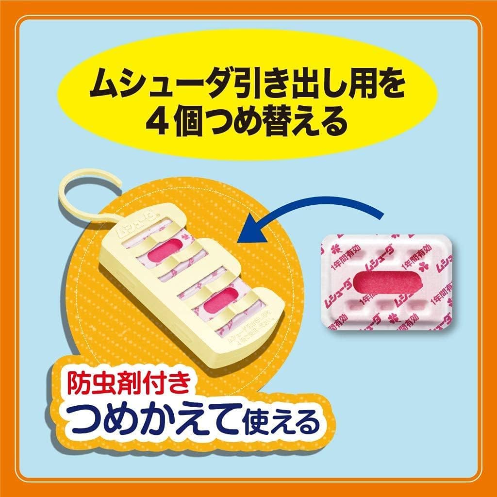 ●防虫ケースのなかの防虫剤(ムシューダ引き出し・衣装ケース用)を取り替えれば、くり返し使用できます。