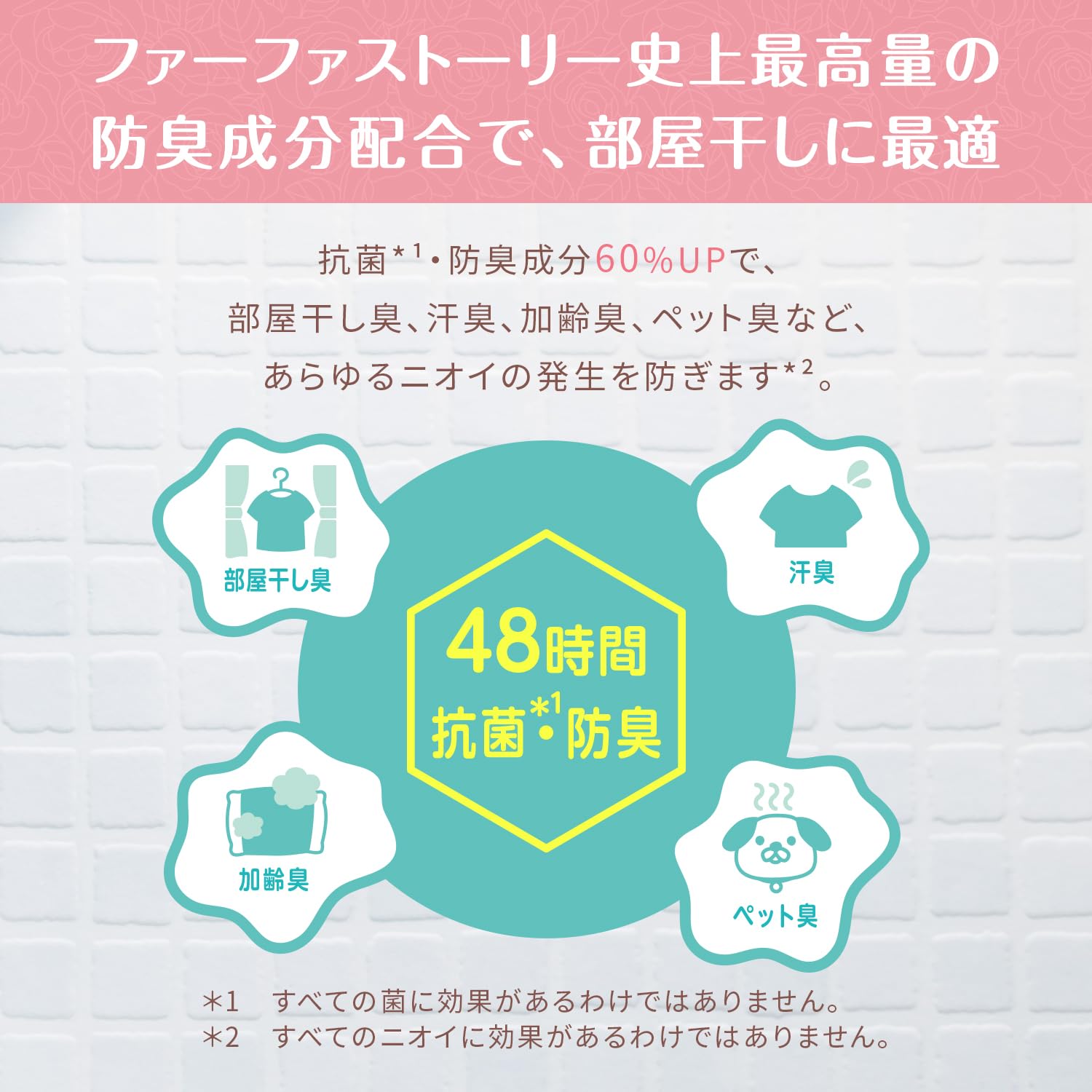 ●抗菌・防臭成分60%UPで、部屋干し臭、汗臭、加齢臭、ペット臭など、あらゆるニオイの発生を防ぎます。