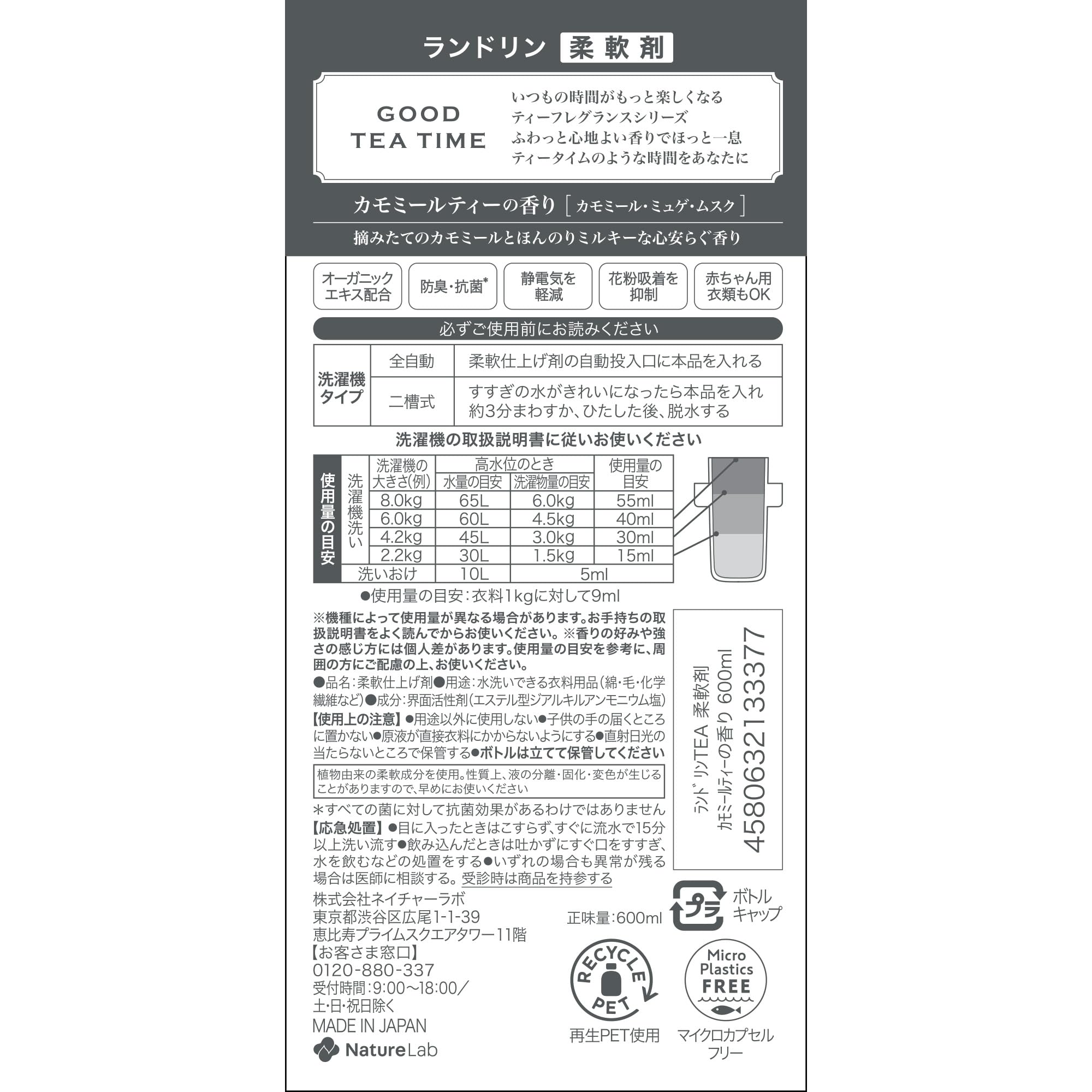 Laundrin ランドリン 柔軟剤 カモミールティーの香り 600ml