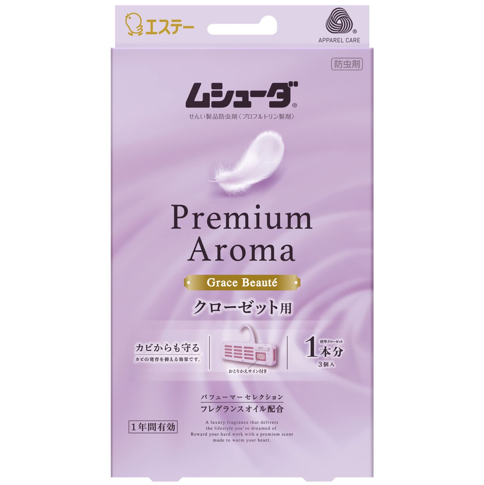 ムシューダ プレミアムアロマ 香り 衣類 防虫剤 防カビ剤配合 クローゼット用 グレイスボーテ 3個入 1年間有効