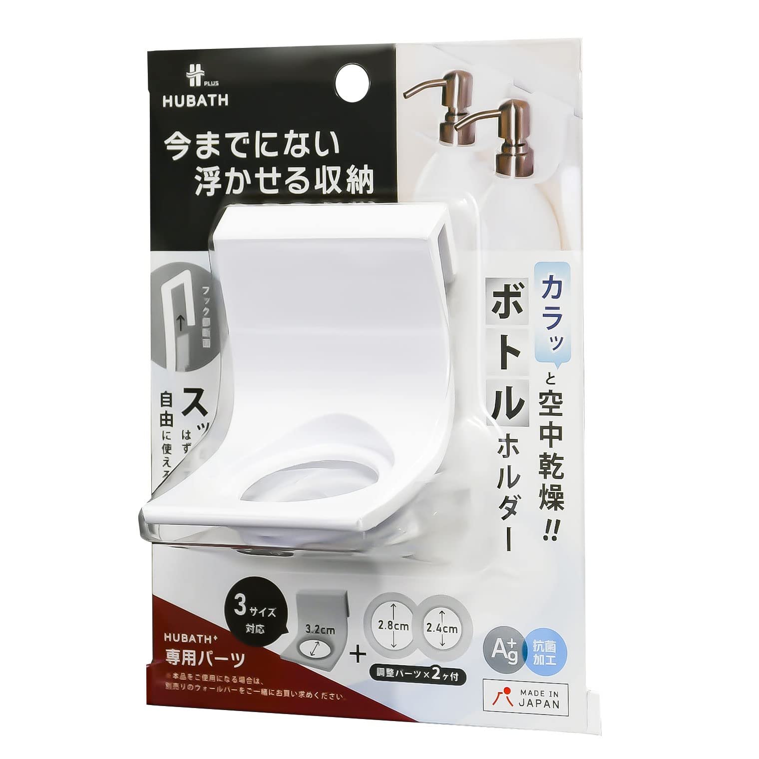 シンカテック 浴室収納 ヒューバスプラス ボトルホルダー 日本製 429738 5.5×6.6×高さ5.5cm ホワイト