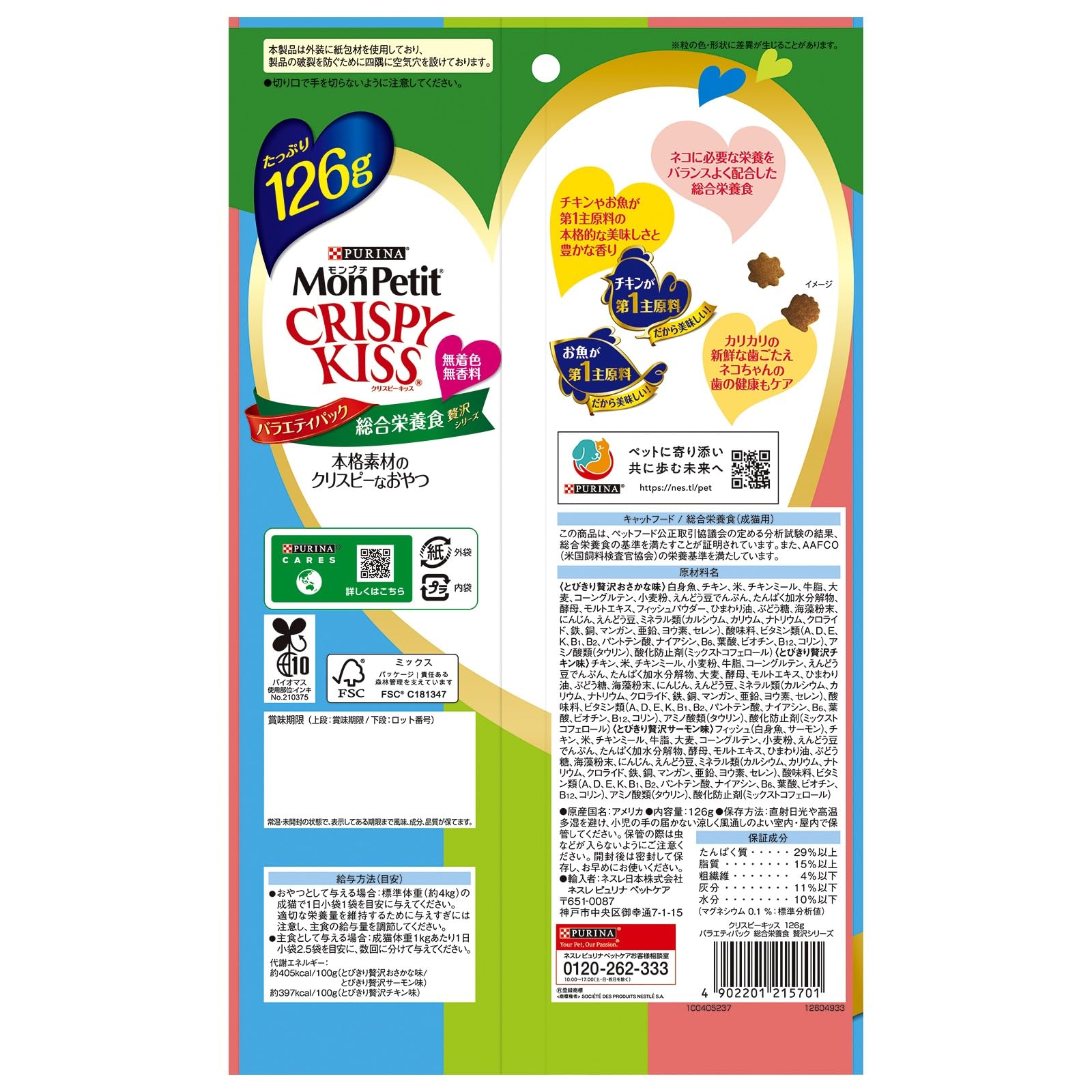 モンプチ クリスピーキッス 猫用おやつ バラエティーパック 総合栄養食 贅沢シリーズ 126g(6gx21袋)