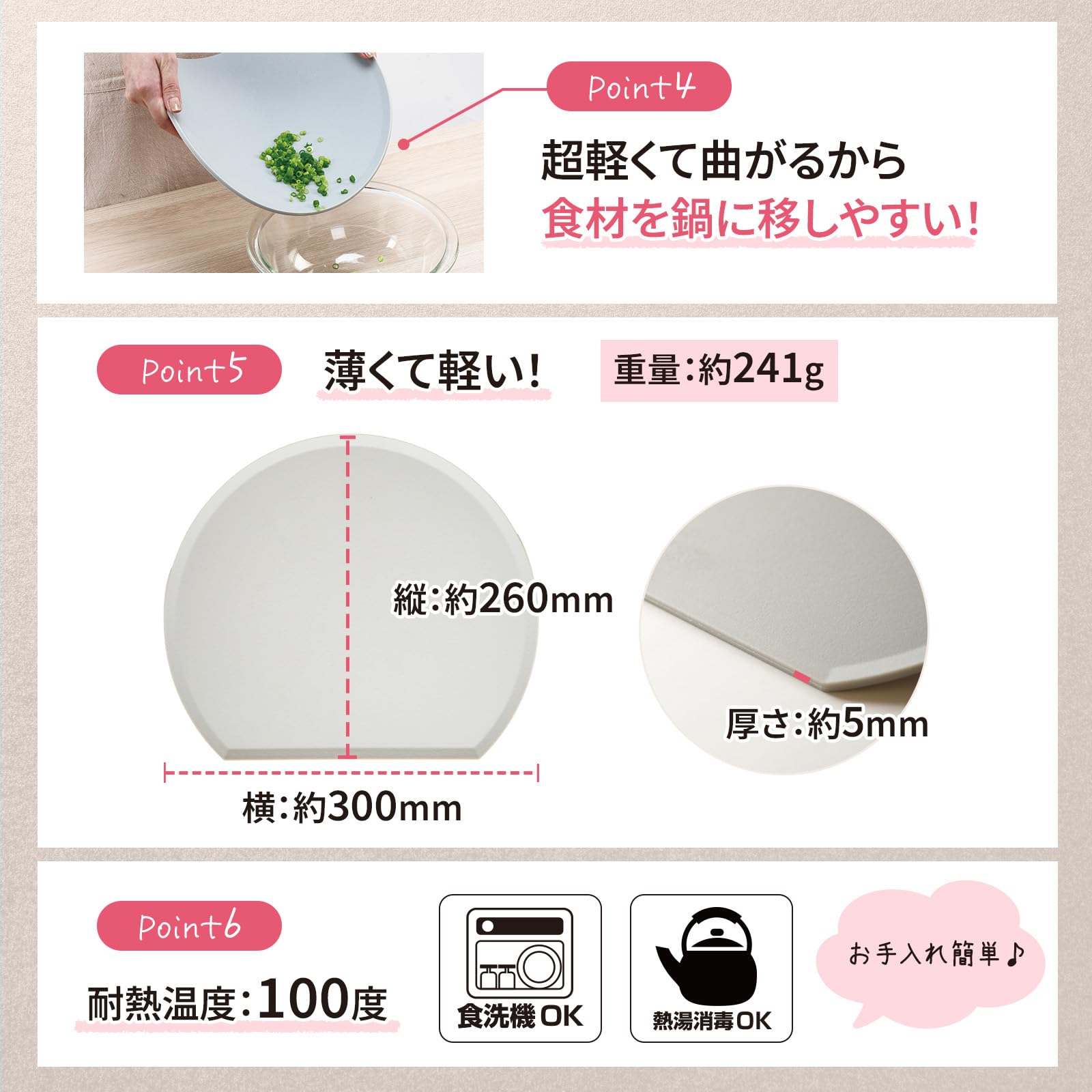 超軽くて曲がるので食材を移しやすい!もちろんそのままお皿として利用もOK