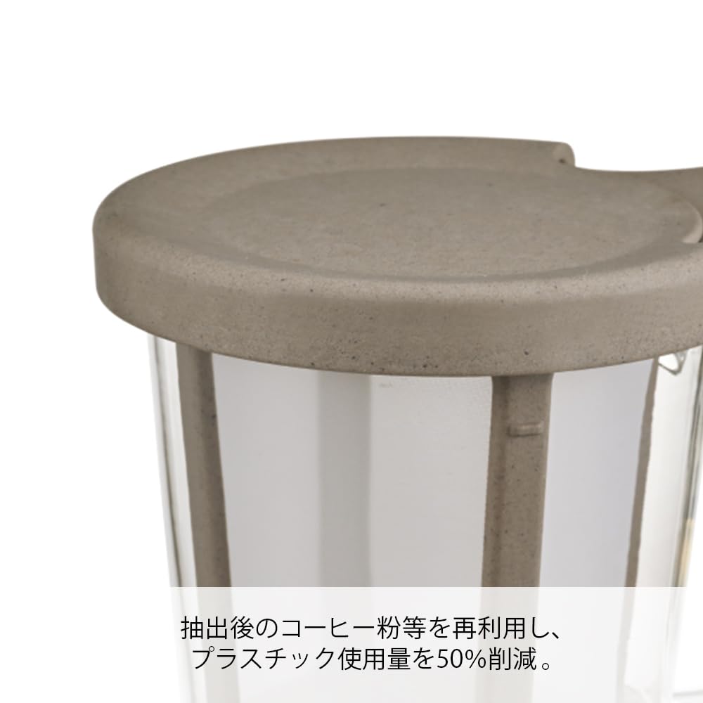 【商品詳細】 本体サイズ:幅11.8×奥9.3×高9.3cm、実用容量170mL、本体材質:本体/耐熱ガラス、フタ・ストレーナー/ポリプロピレン・コーヒーカス・天然系無機物、メッシュ/ポリエステル、日本製