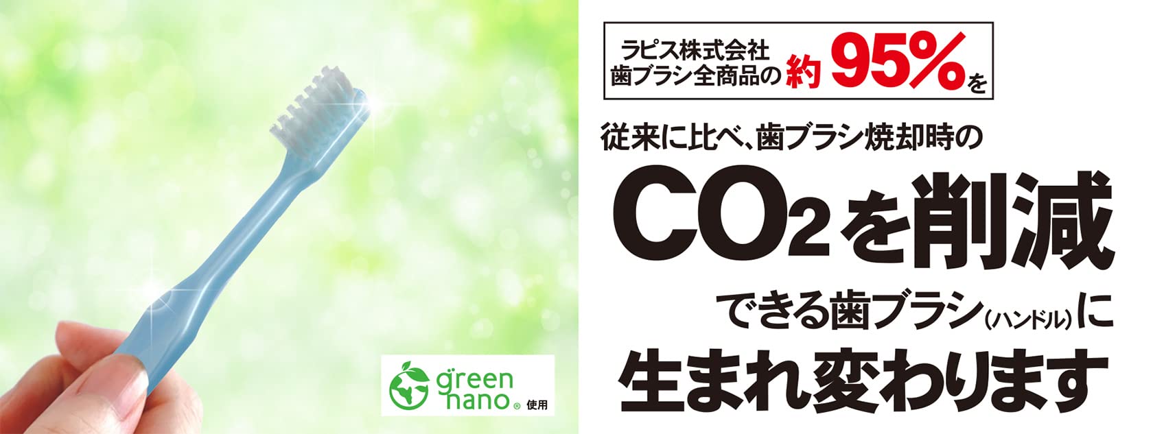 僅かな炭化促進剤をハンドルの原料に加えることで、歯ブラシの燃焼処分時に発生する二酸化炭素を従来より34.78%削減できるハンドルに変わりました!
