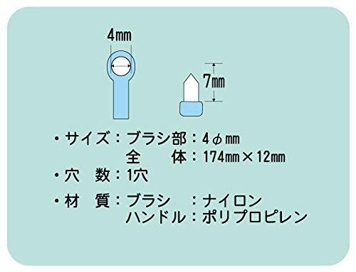 日本製。サイズ ブラシ部:直径4mm×7mm 全体:174mm×12mm 穴数:1穴 毛の材質:ナイロン ハンドル:ポリプロピレン *1セットにキャップ1個がついてます。
