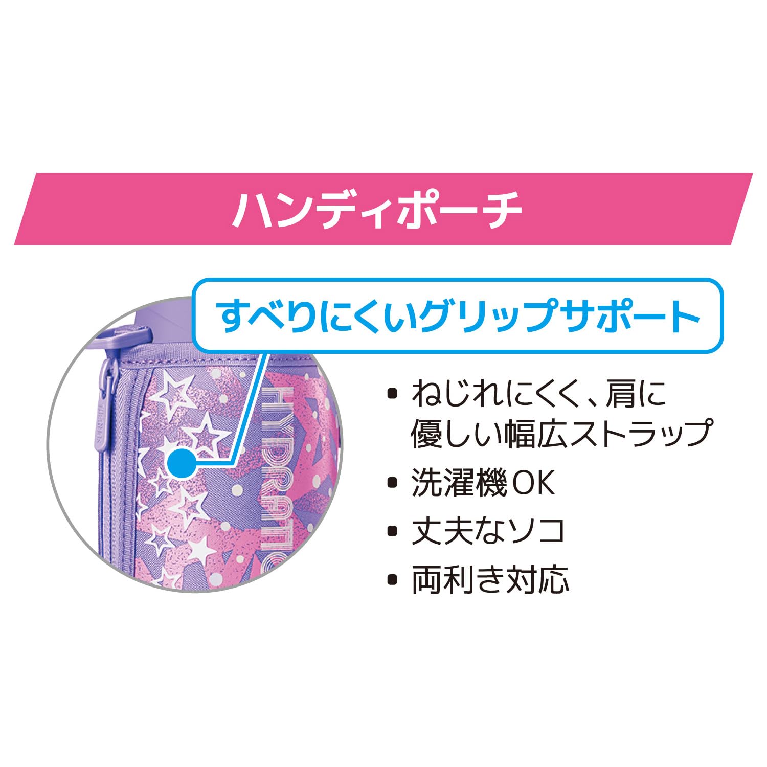 ●両手でポーチが持ちやすいグリップサポート付き
