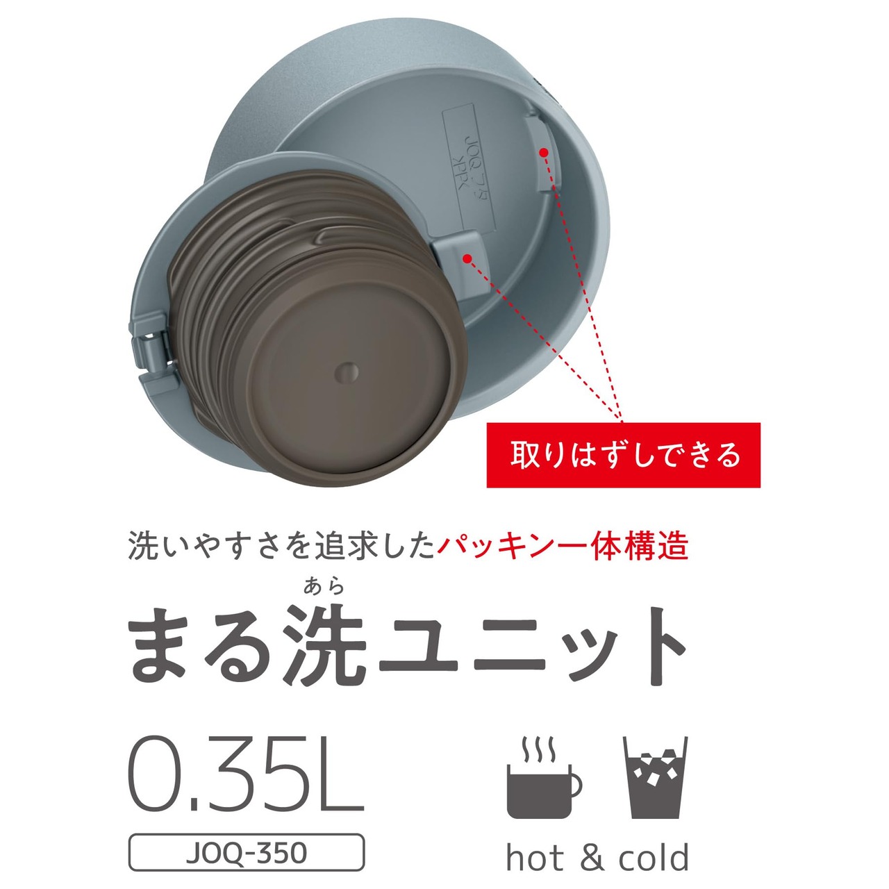 ・【パッキン一体構造】洗いやすさを追求したせんとパッキンが一体型の「まる洗ユニット」。簡単に取り外すことができ、フタの内側の細かい溝まできれいに洗える。