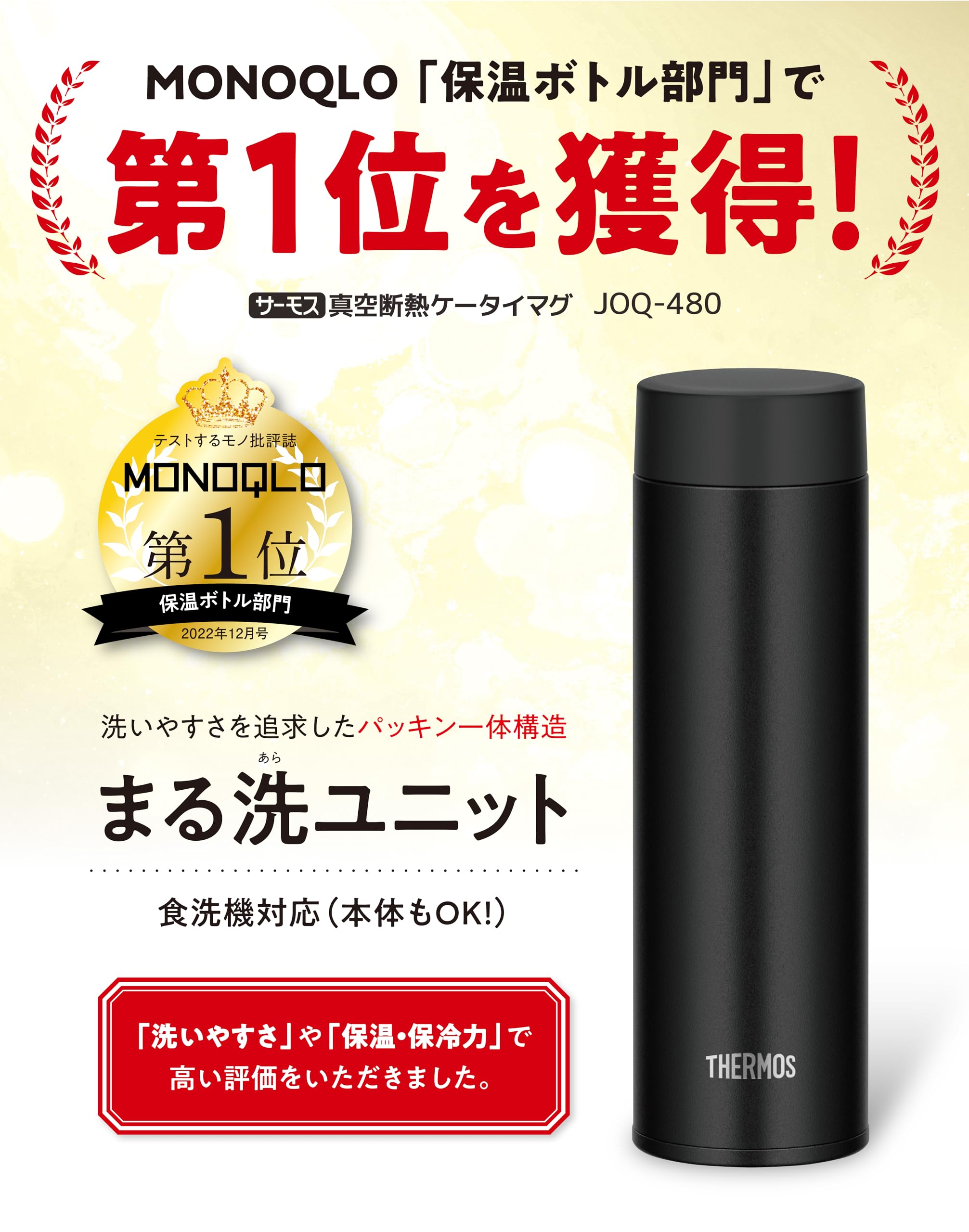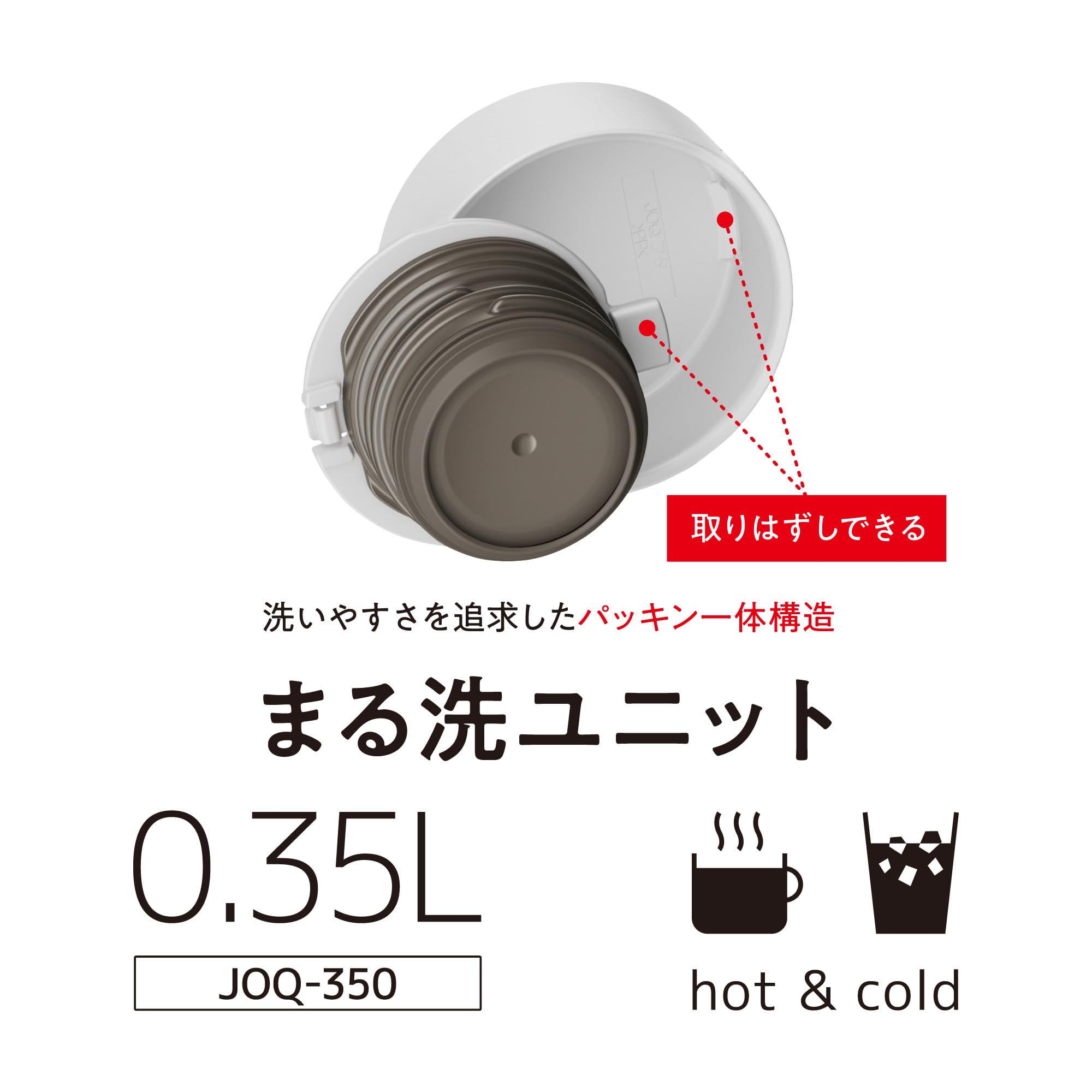 【在庫処分】【せんとパッキン一体型・食洗機対応】サーモス 水筒 真空断熱ケータイマグ350ml ホワイト 隅々まで簡単に洗える 全てのパーツ食洗機OK ステンレス ボトル 軽量コンパクト JOQ-350 WH