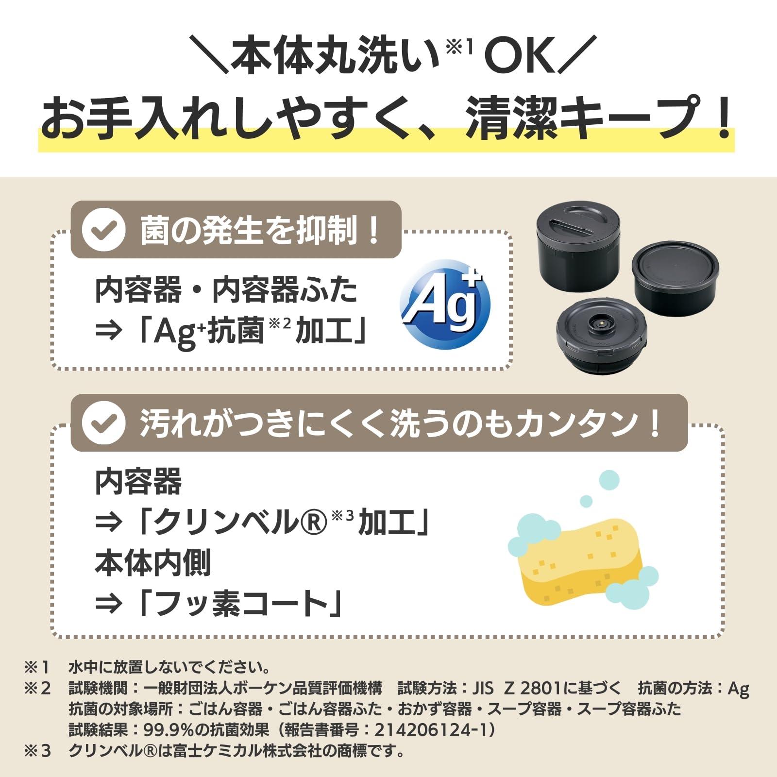 「Ag抗菌加工内容器」で清潔。