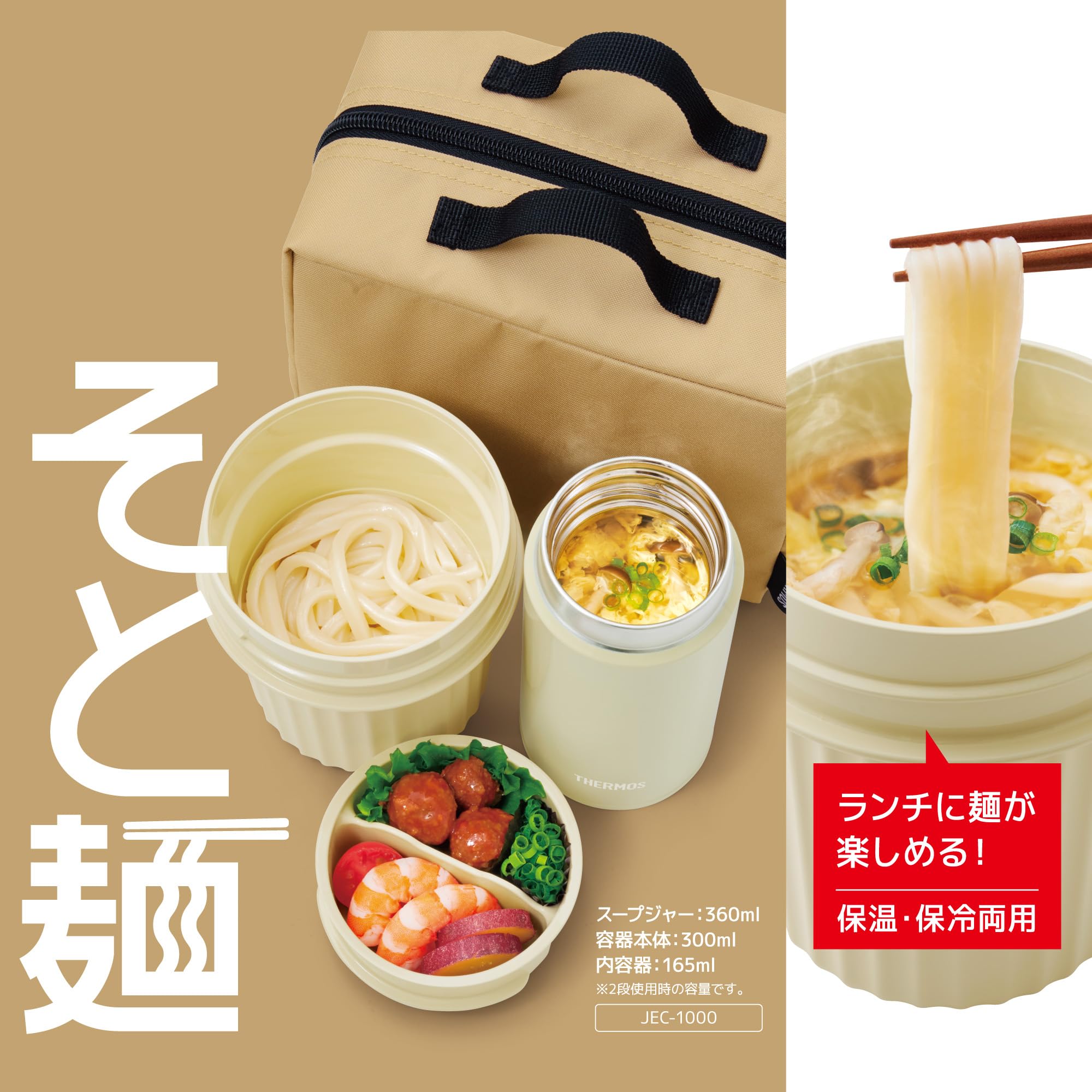 【特価在庫】サーモス 弁当箱 ヌードルコンテナー ベージュ JEC-1000 BE 保温・保冷両用