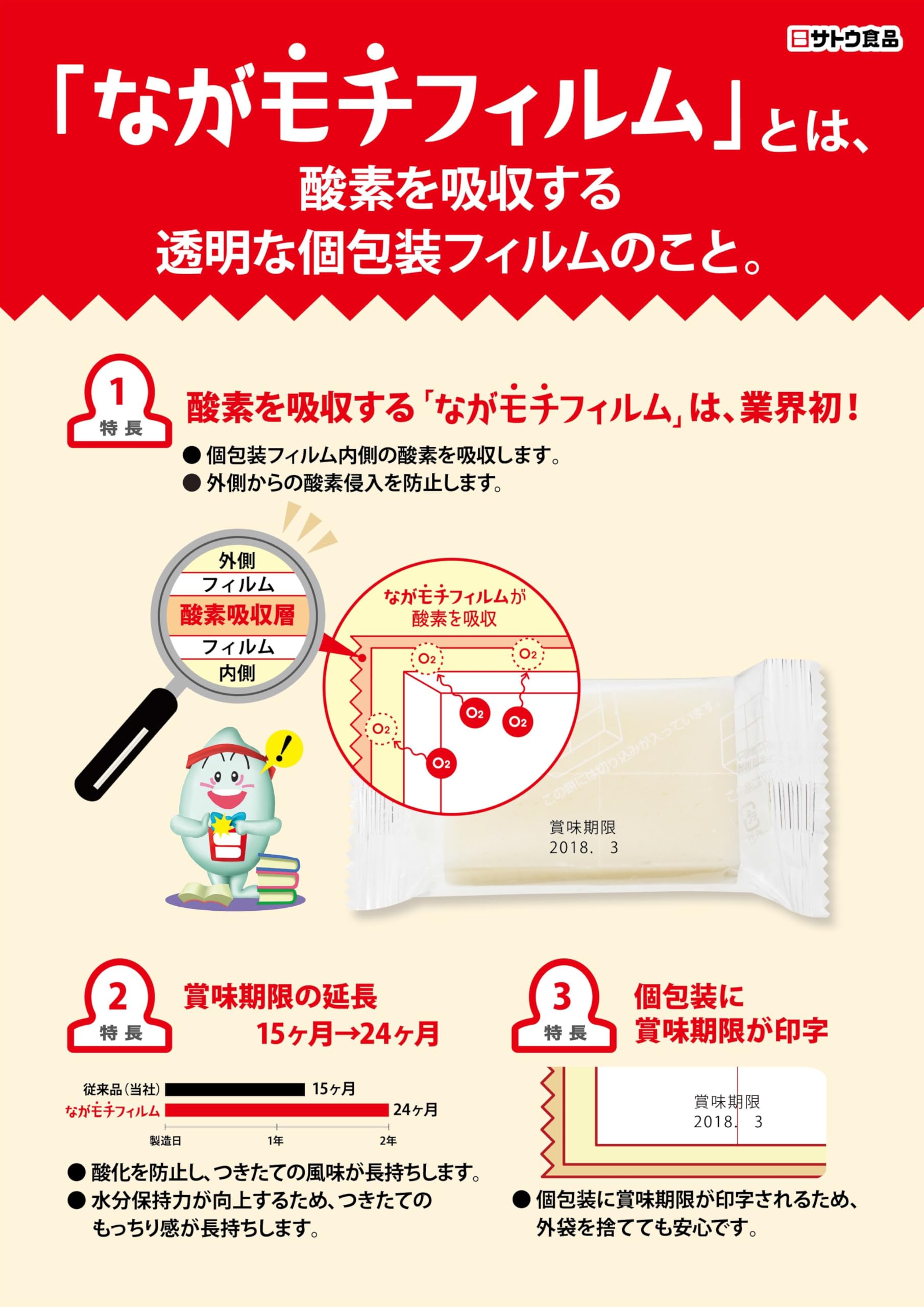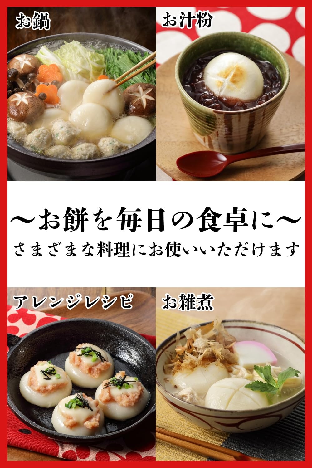 無菌パックにより、つきたての美味しさをお召し上がりいただけます。