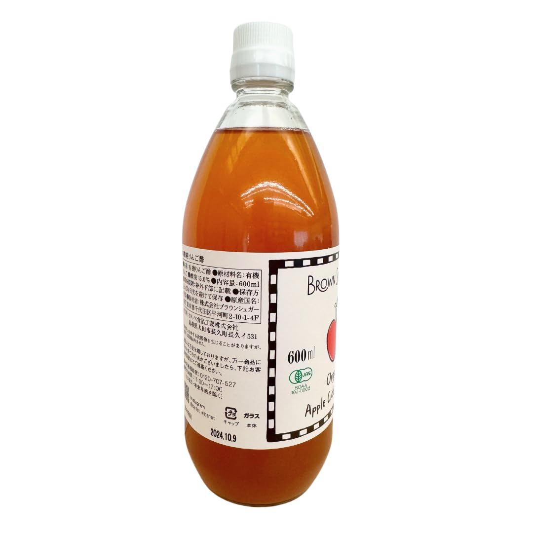 オーガニック アップルサイダービネガー 600ml (有機 りんご酢 フルーツビネガー 無濾過 菌母(MOTHER)含有 無添加 100%天然 ブラウンシュガーファースト)