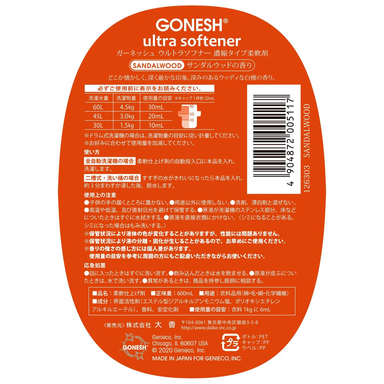 GONESH(ガーネッシュ)ウルトラソフナー(柔軟剤)サンダルウッド(深みのある白檀の香り)600ml
