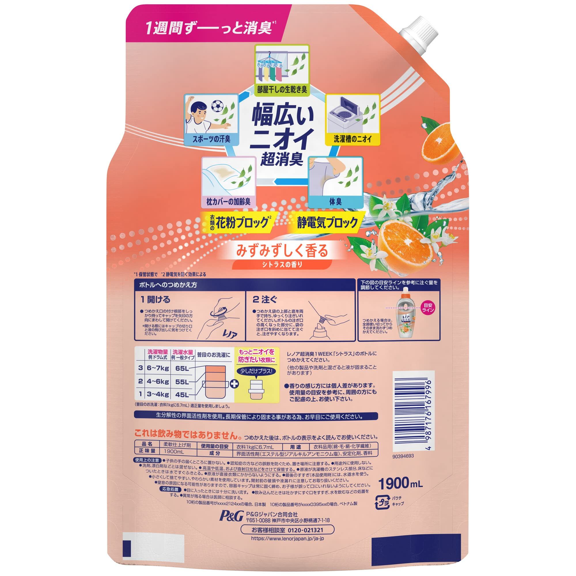 レノア Lenor 超消臭1week 柔軟剤 シトラス 詰め替え 大容量 1900mL
