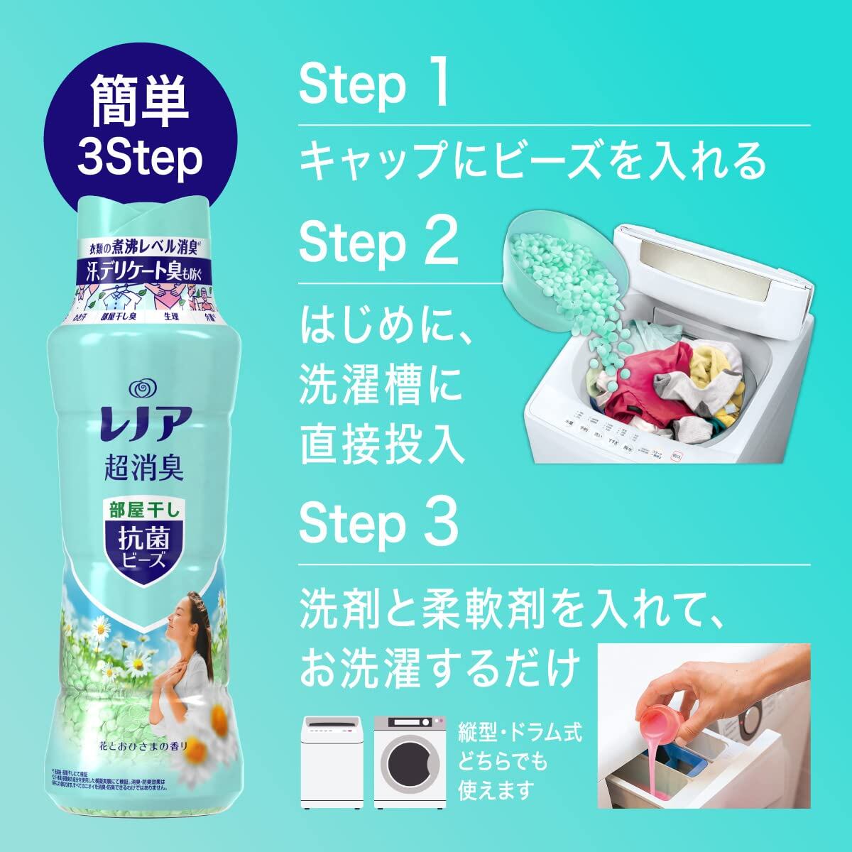 従来品^より360mL増量 ^抗菌ビーズ詰替え用760mL衣類の煮沸レベル消臭* 1 *1 洗濯後・部屋干しにて検証