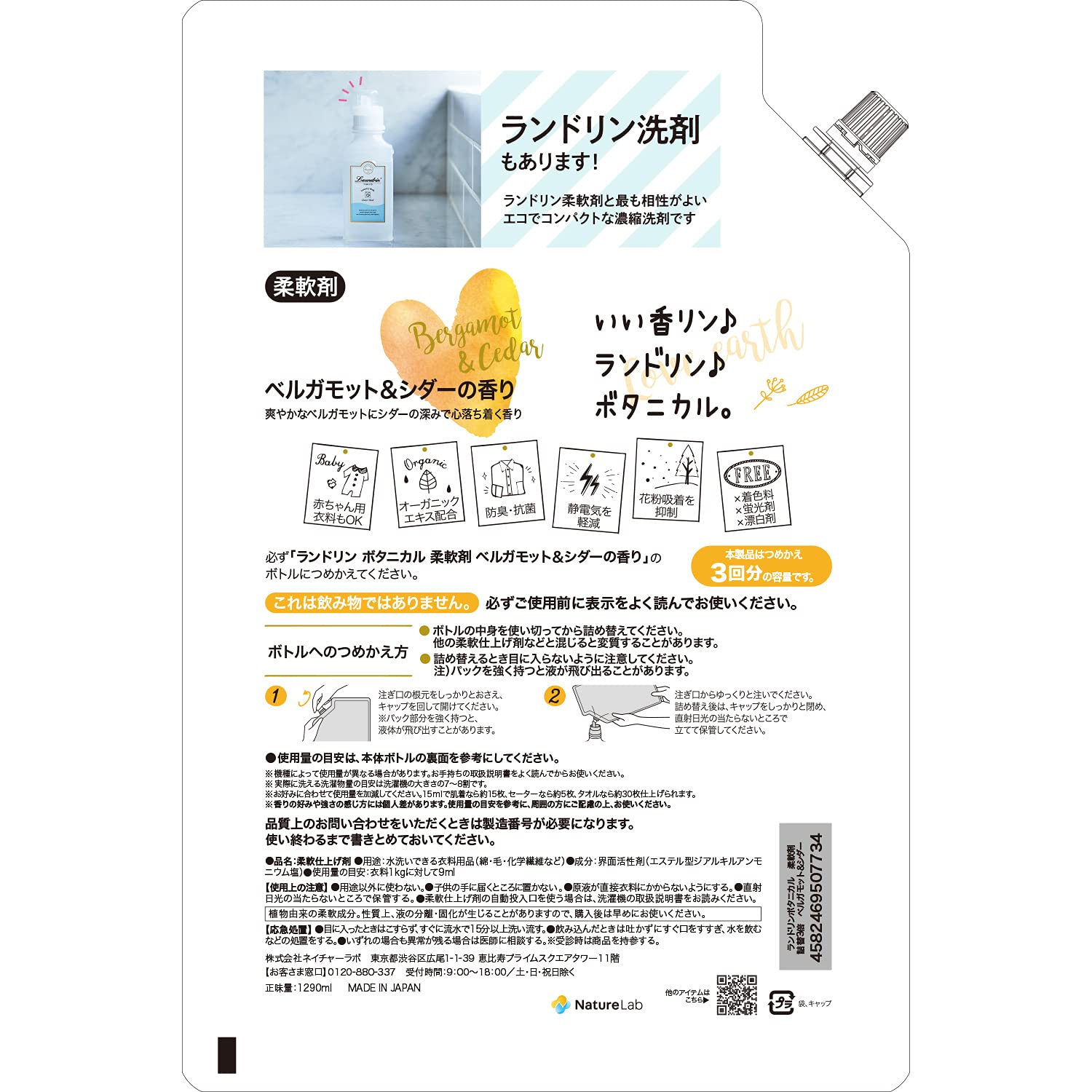 Laundrin'(ランドリン) ボタニカル 柔軟剤 特大容量 ベルガモット&シダー 詰め替え 3倍サイズ 1290ml オーガニック