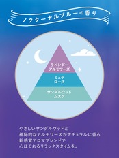 やさしいサンダルウッドと神秘的なアルモワーズがナチュラルに香る、ノクターナルブルーの香り。心ほぐれるリラックスタイムをお楽しみください。
