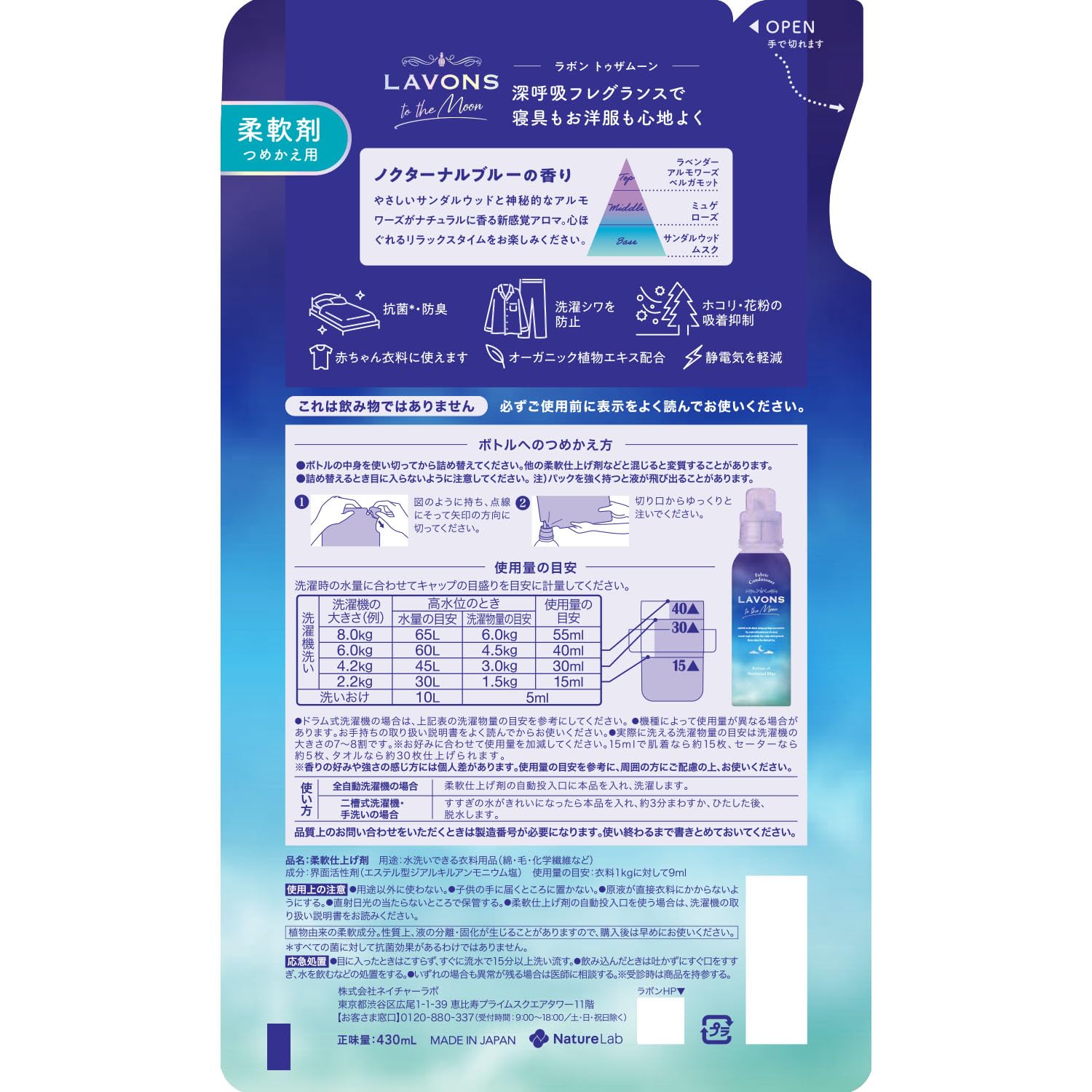 ラボン(Lavons) トゥザムーン to the Moon 柔軟剤 ノクターナルブルーの香り 詰め替え 430ml
