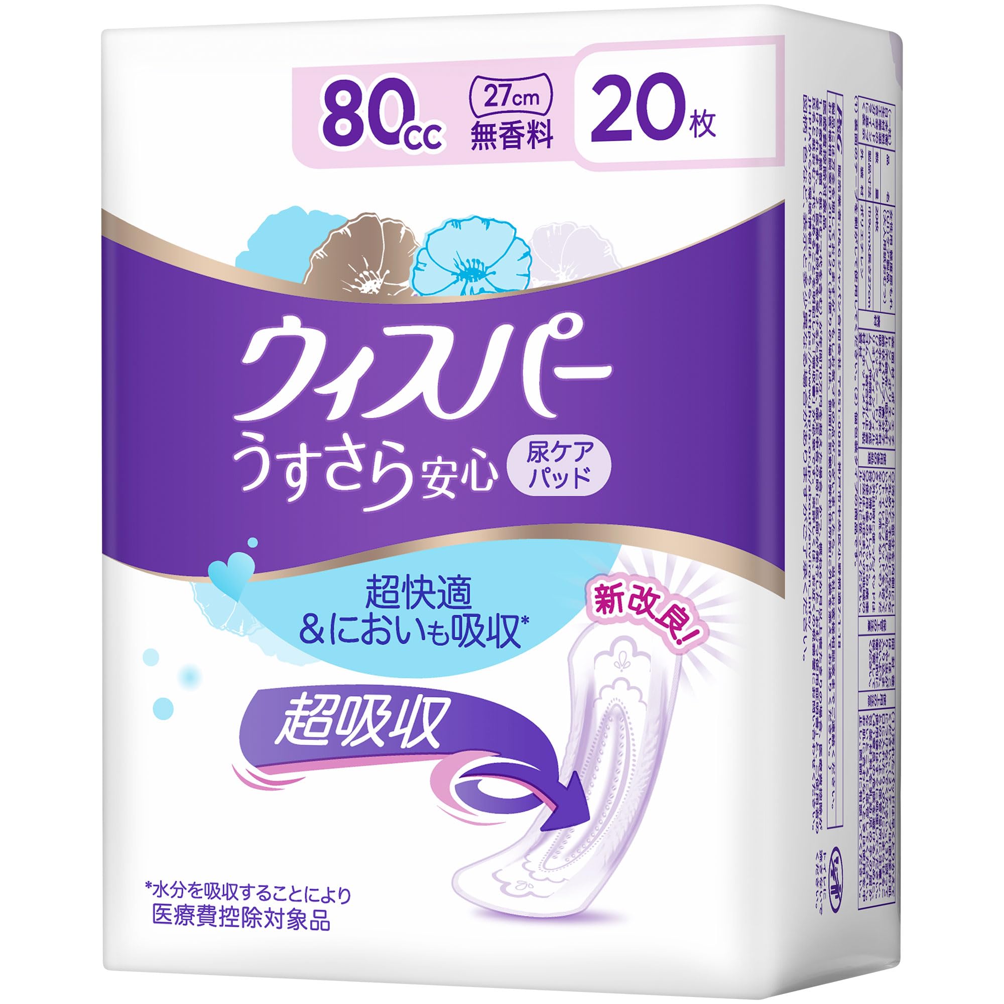 WHISPER P&G ウィスパー うすさら安心 80cc 20枚 無香料 (吸水ナプキン 尿漏れパッド 女性用)【中量用】