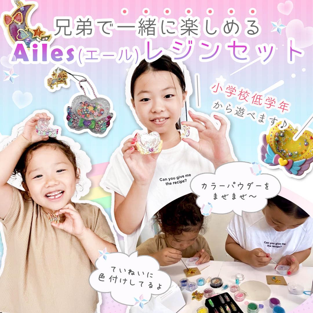 ??Ailes(エール)のレジンセットシリーズGirl'sセットがついに登場しました!小学校低学年から楽しめます?エールのオリジナル液が2本付きなので、兄弟でも一緒に作れますし、親子でも一緒にレジン作りが楽しめていただけます。