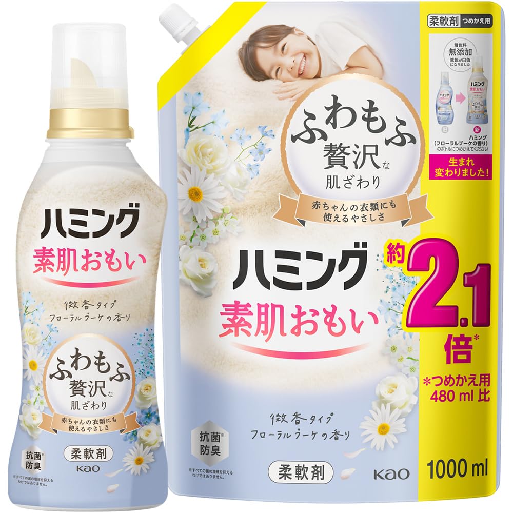 ハミング 【まとめ買い】素肌おもい 柔軟剤 ふわもふ贅沢な肌ざわり・No.1のやわらかさ フローラルブーケの香り 本体 530ml+詰替え用 1000ml