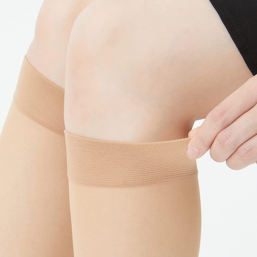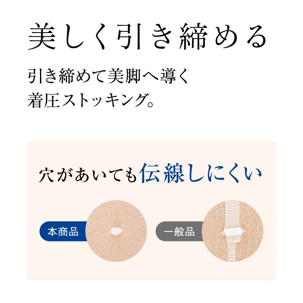 自然な透明感で肌を美しくみせる着圧ショートストッキング。足首着圧13hPa。長時間立ち仕事をしている方におすすめ。