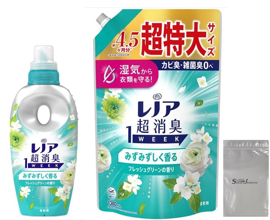 レノア 超消臭1WEEK 柔軟剤 フレッシュグリーン 本体 490ml 詰め替え 1380ml ロゴ袋付きB0F6D19S9C