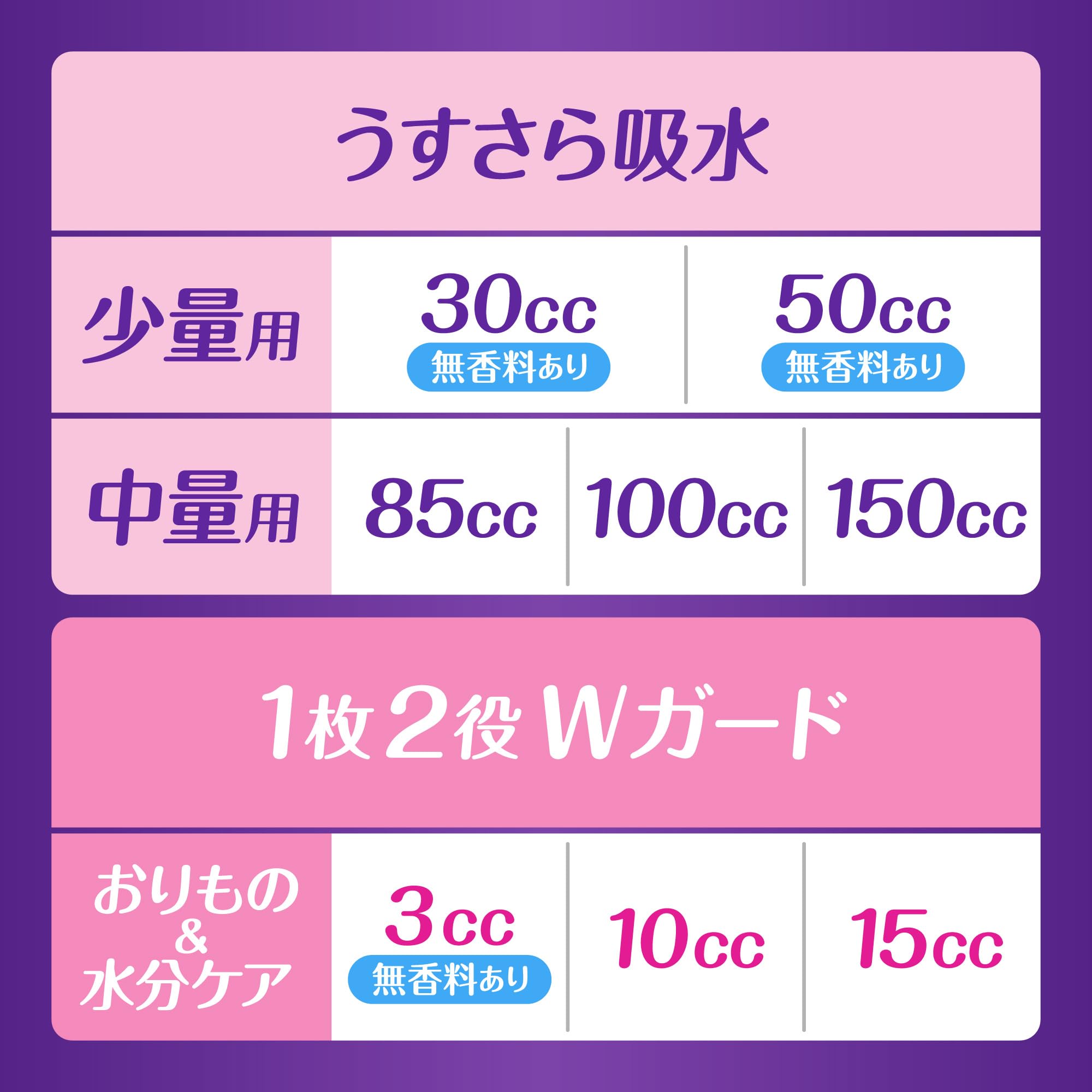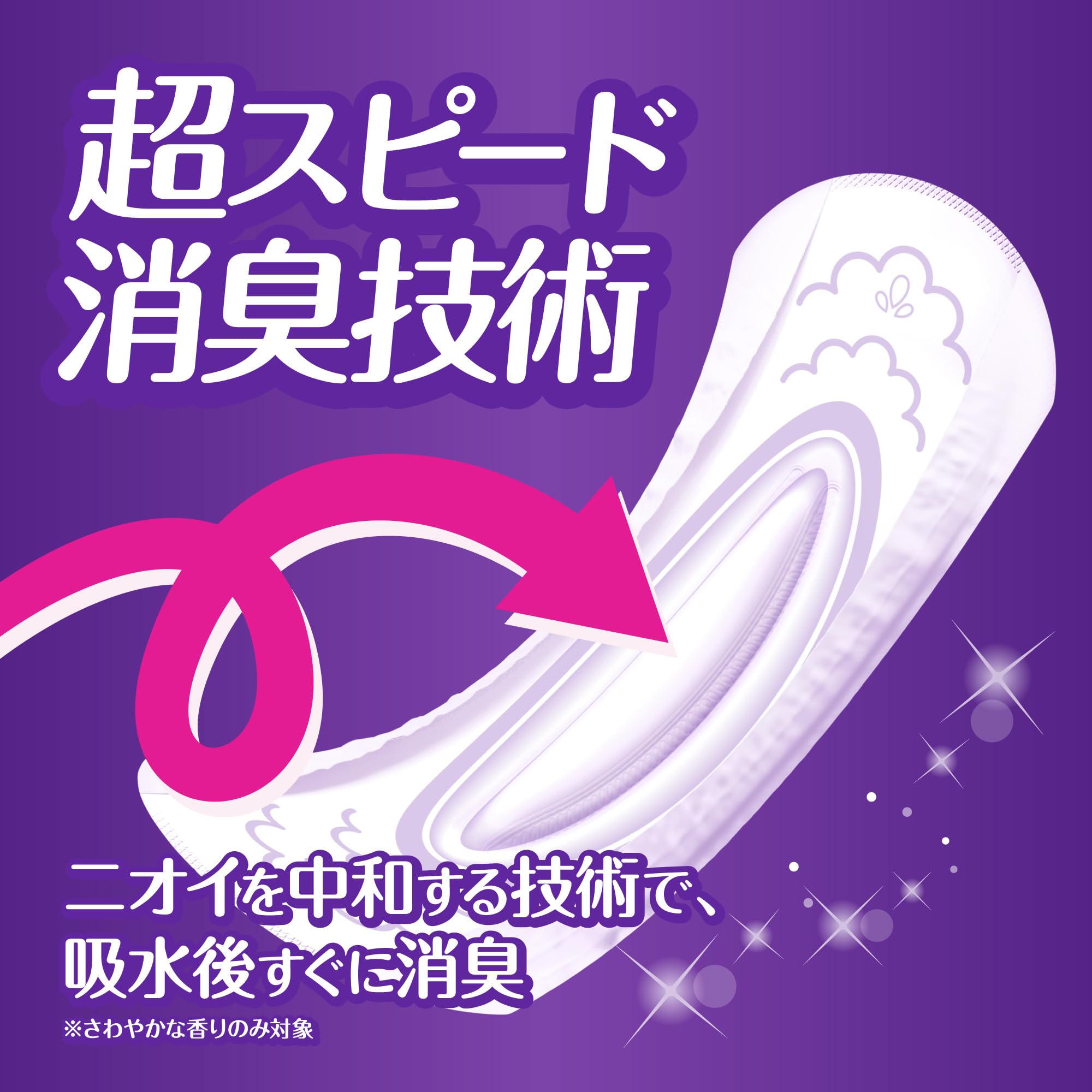 スピード吸収、超スピード消臭技術。 いやなにおいを中和する技術で、吸水後のにおいもすぐに消臭。
