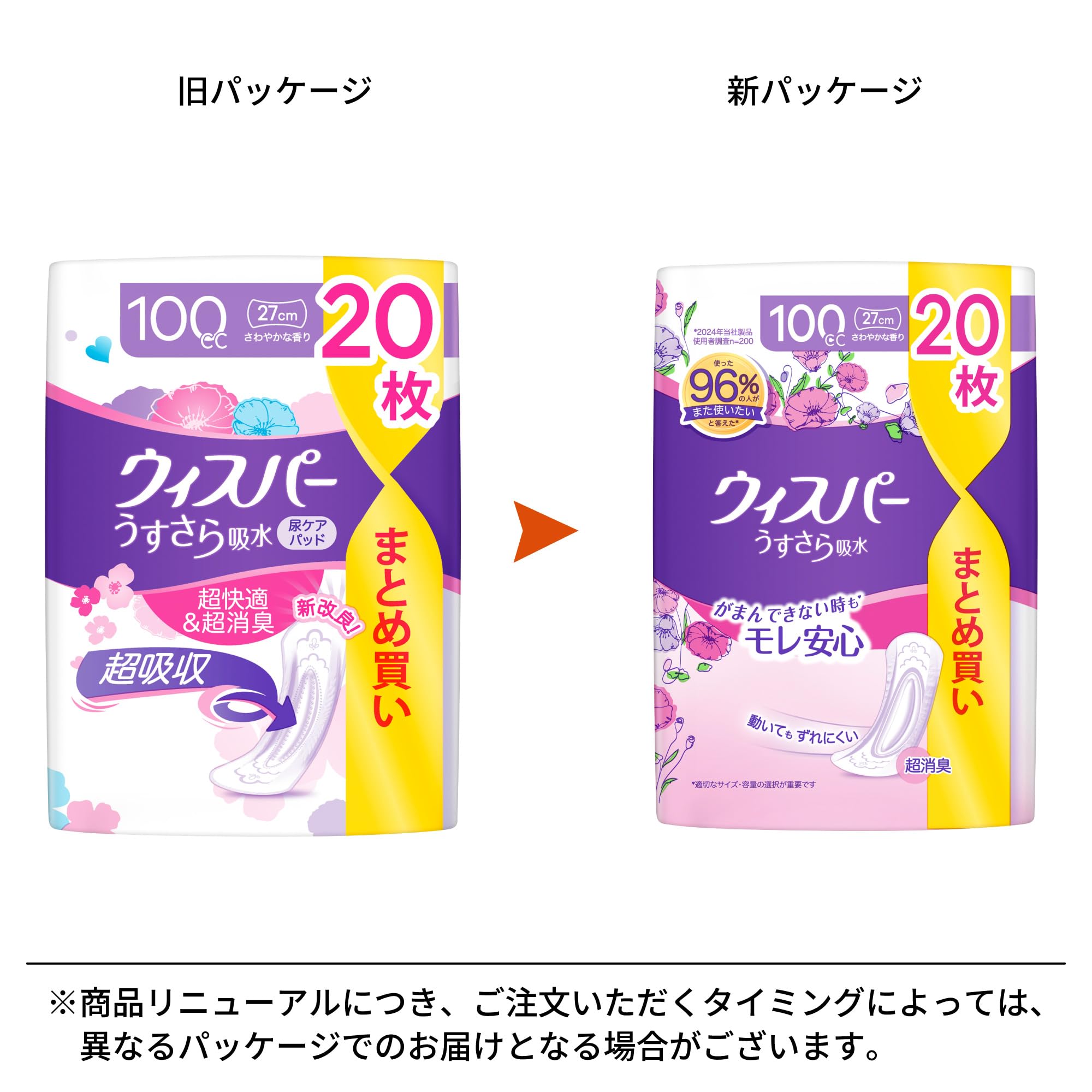 ウィスパー うすさら吸水 100cc 20枚 (尿漏れパッド 尿とりパッド 女性用) 【中量用】