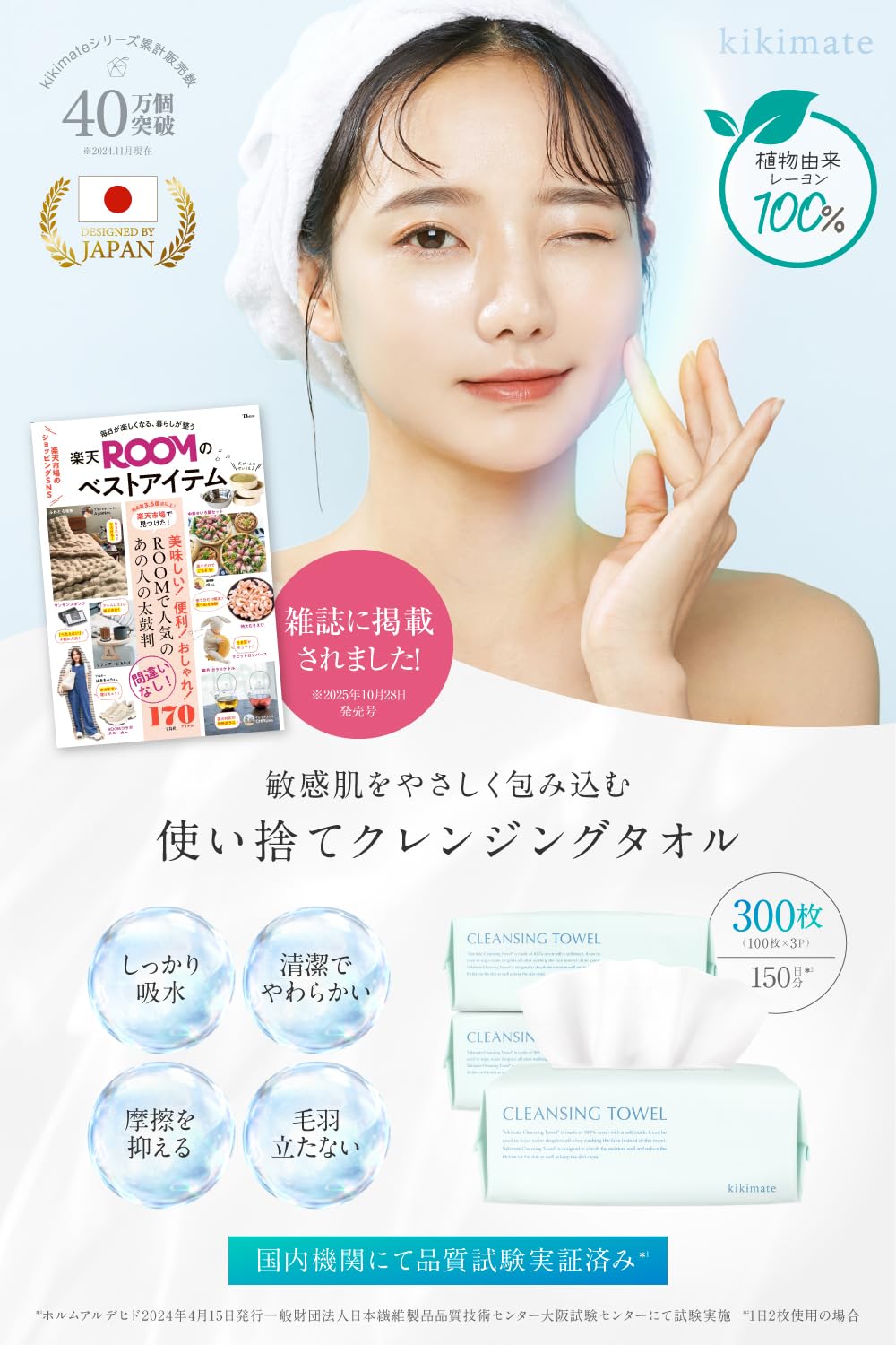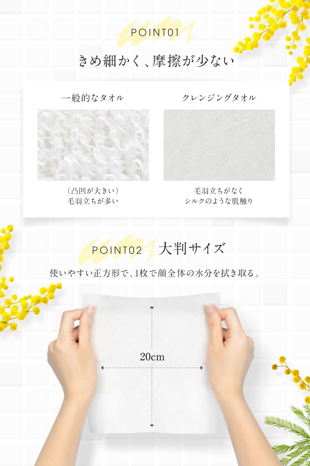 ?【敏感肌のためのタオル】 洗濯したきれいなタオルでも『雑菌』『洗剤残り』『ほこり』『摩擦による肌への刺激』で肌トラブルが生じる可能性があります。しっかりケアをしていてもなかなか治らない肌トラブルは毎日使ってるタオルが原因かも…。クレンジングタオルは使い捨てタイプでとても衛生的。繊維残りせず、摩擦も防げるため、洗顔後のデリケートな肌をやさしく包み込みます。 ?【高品質でコスパ良し】100枚×3セットで計300枚と大容量!1日2回の使用で150日間ご使用いただけます。