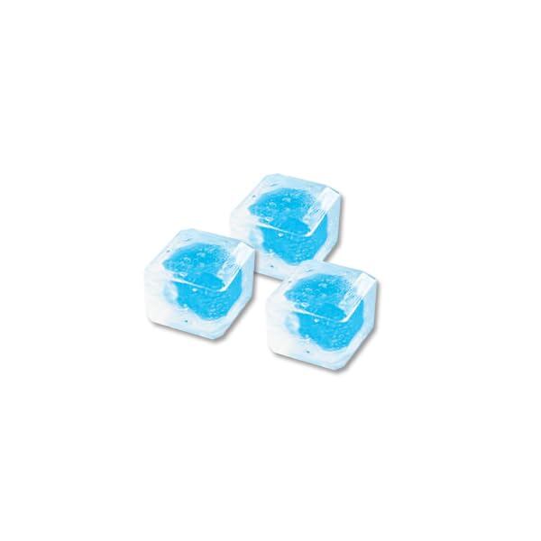 氷のように透明な立方体のキャンディ。ひんやりキャンディの中にひんやりグミを入れました。清涼感あふれるソーダ味。