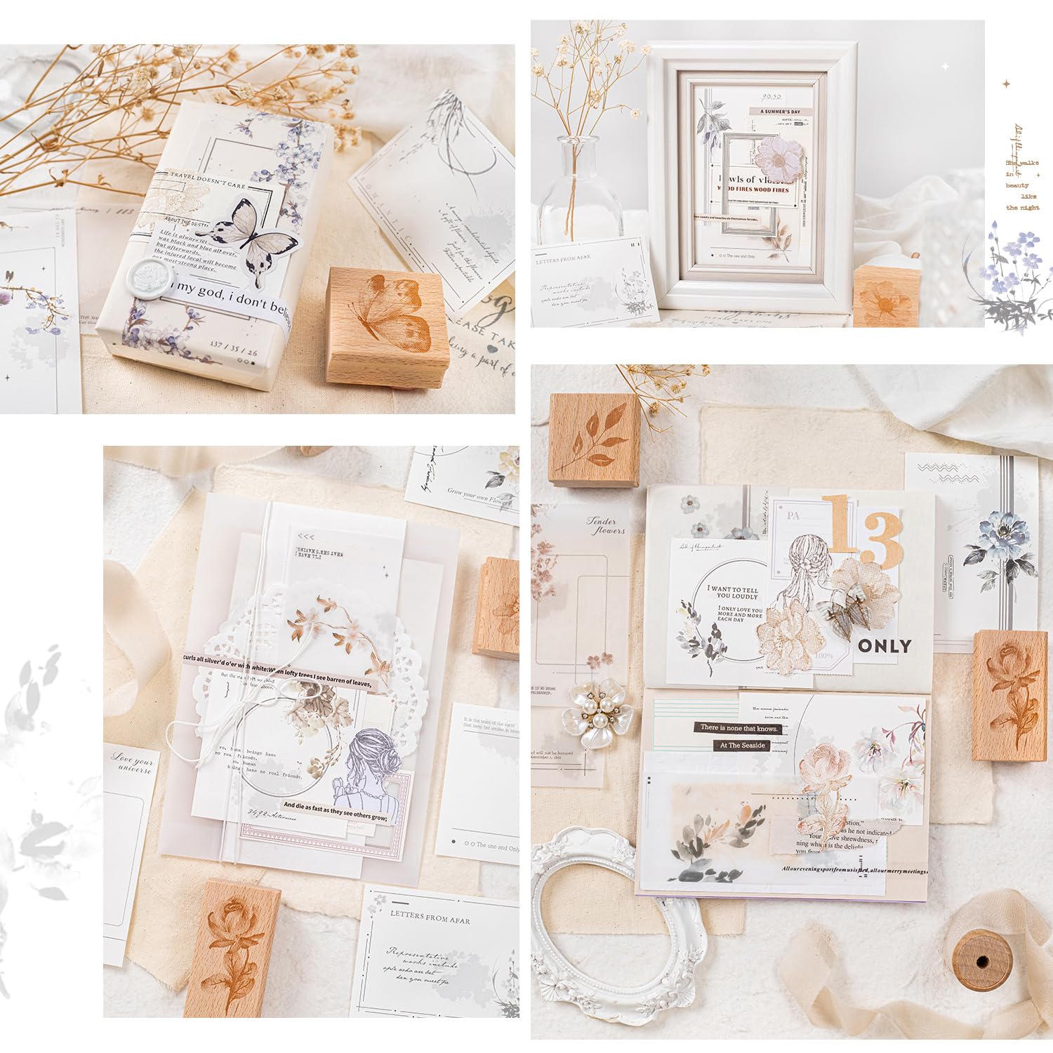 コラージュ 素材 デザインペーパー レトロ Arpaper 詰め合わせ 素材紙 硫酸紙 背景紙 紙もの シール ペーパー 大容量 おしゃれ かわいい ヴィンテージ クラシック アンティーク 花 (墨の花)