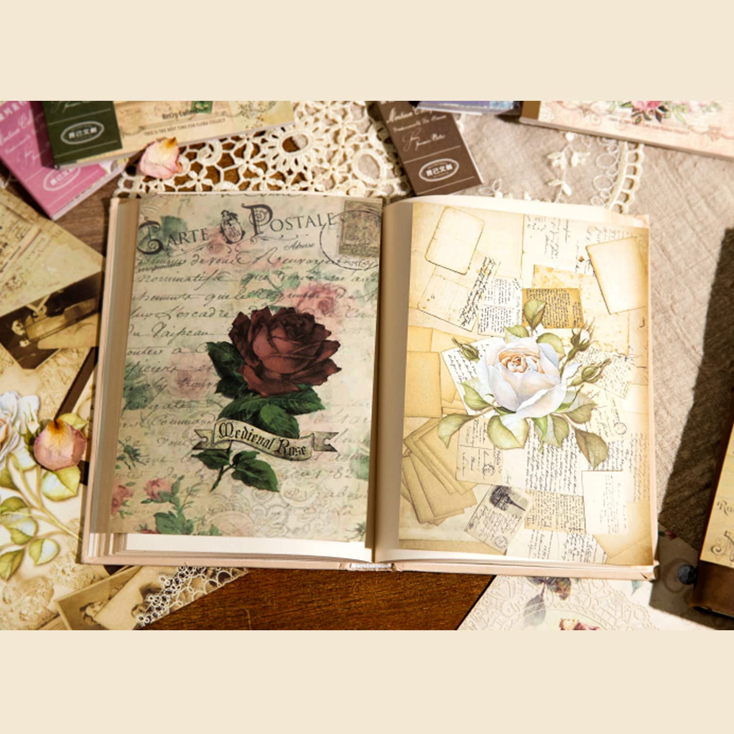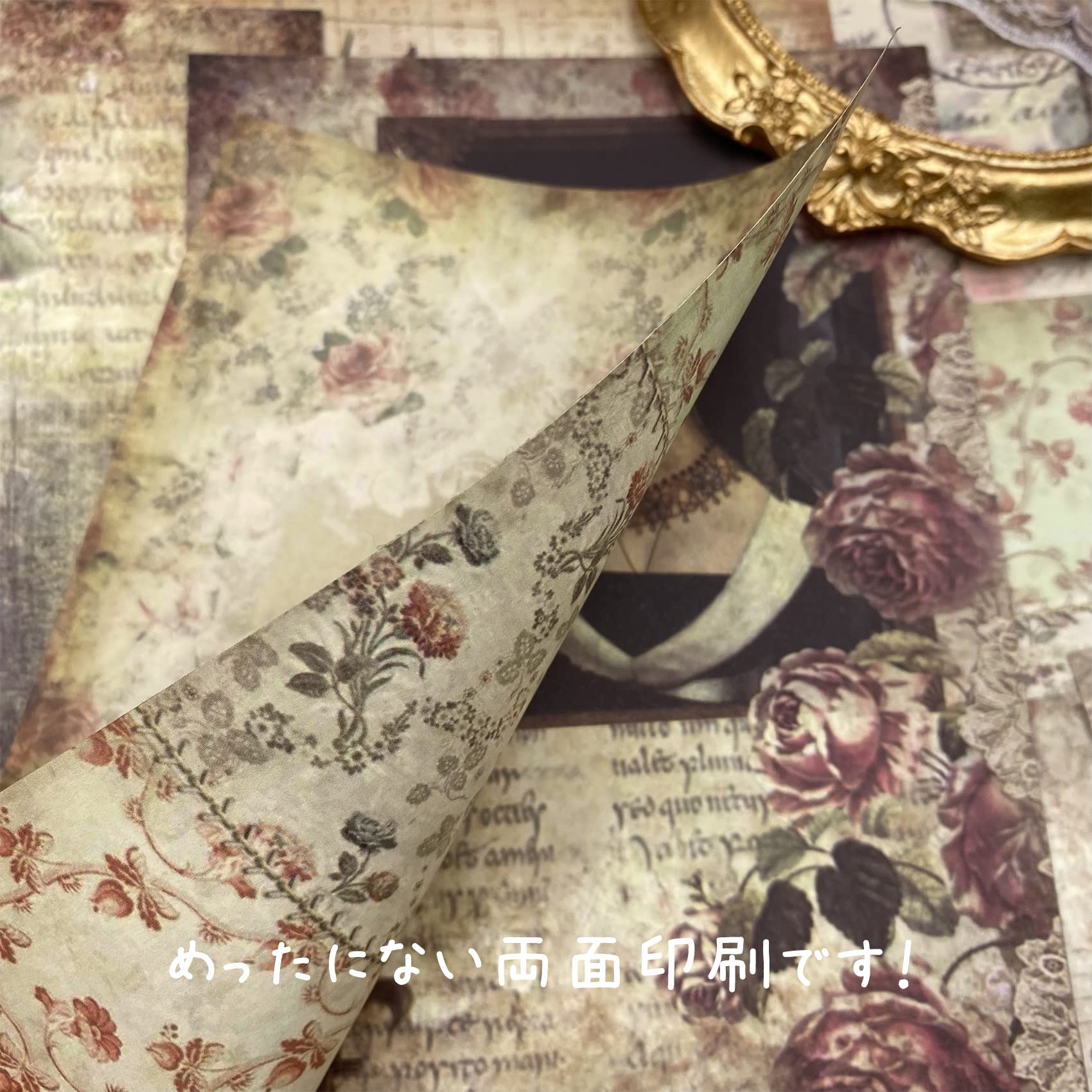 コラージュ 素材 デザインペーパー 詰め合わせ Arpaper シール レトロ 両面印刷 素材紙 背景紙 紙もの ペーパー おしゃれ かわいい 40枚セット ヴィンテージ クラシック アンティーク 花 英字 女の子 バラ(バラの紀年2)