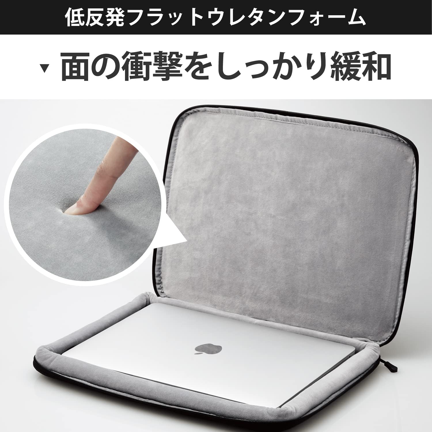 本体天面には、面の衝撃をしっかり緩和する、厚手の低反発フラットウレタンフォームを内蔵しています。
