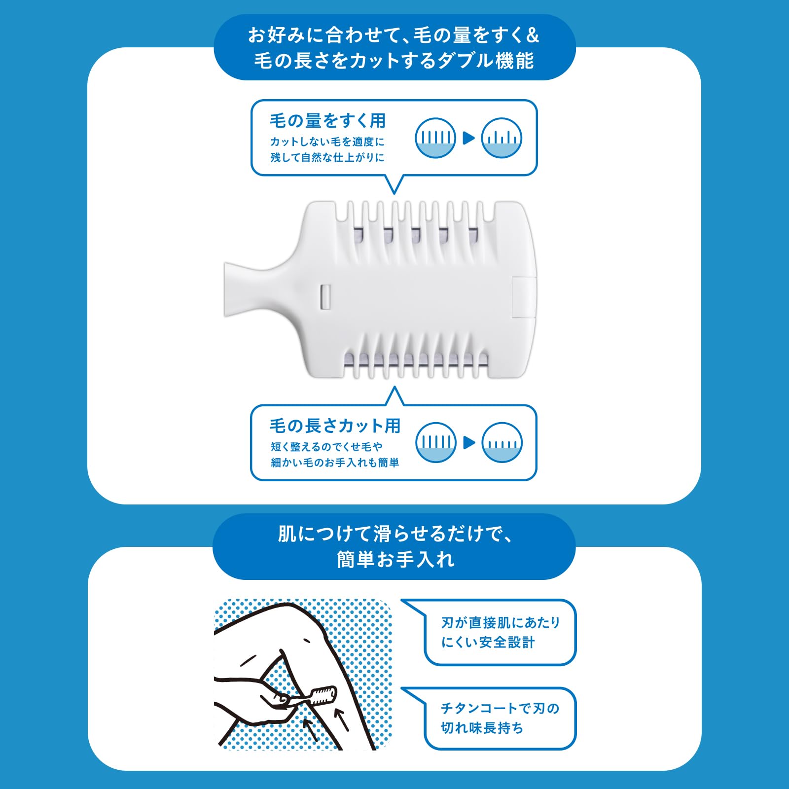 ●刃が直接肌にあたりにくい安全設計。