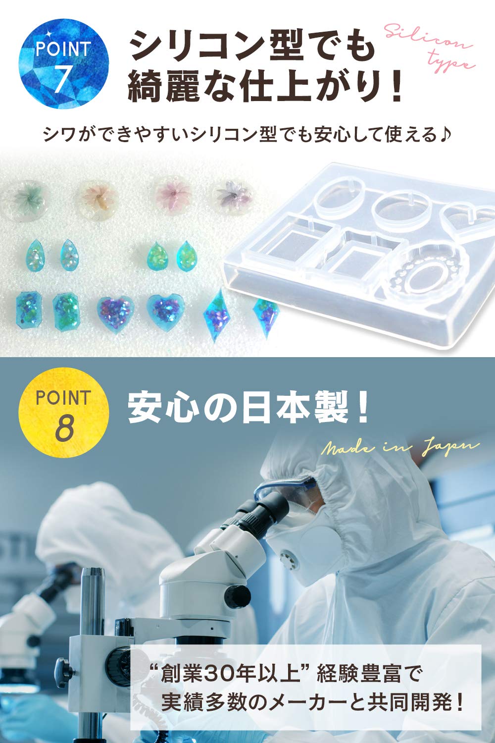 ?【 日本製だから安心して使える!】 創業30年以上の経験豊富で実績多数の国内と共同開発! 【購入後も安心 “充実したサポート“ 】購入店にご連絡いただければ日本人スタッフが迅速に対応いたします。 (※1 紫外線やライトの状況、作品の厚みやその他作業環境等により変わる場合がございます) (※2 経年劣化や使用環境等により樹脂特有の変色がおこる場合がございます)