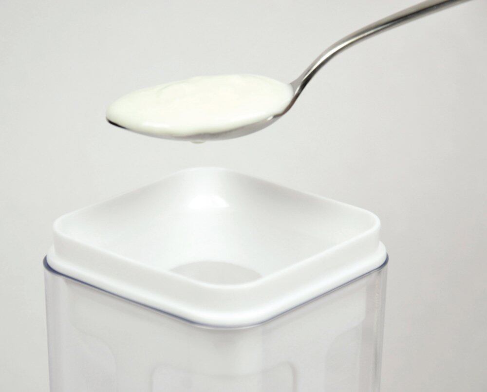 市販のヨーグルトを1パック(450g)まるまる入れて待つだけ。水分が切れて濃密でヘルシーなギリシャヨーグルトに