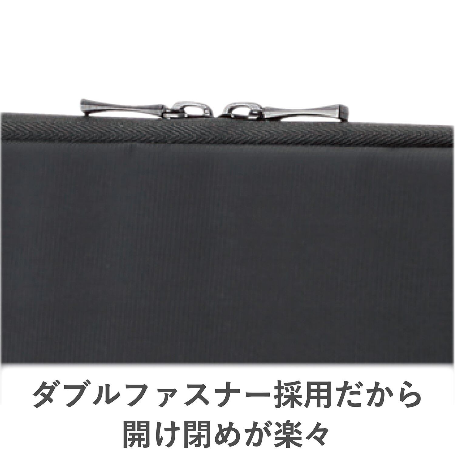 出し入れしやすいフルオープンタイプのダブルファスナーを採用しています。