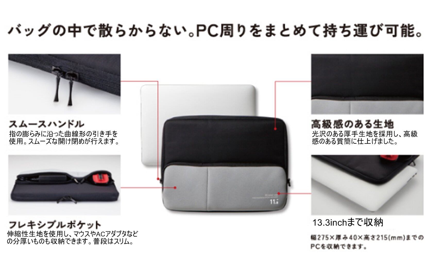 ■対応モデル:~13.3インチ ノートPC ※モニタのベゼル幅によっては14インチサイズも収納可能です。機種によっては対応しない場合がありますので、パソコン本体のサイズをご確認の上お買い求めください。