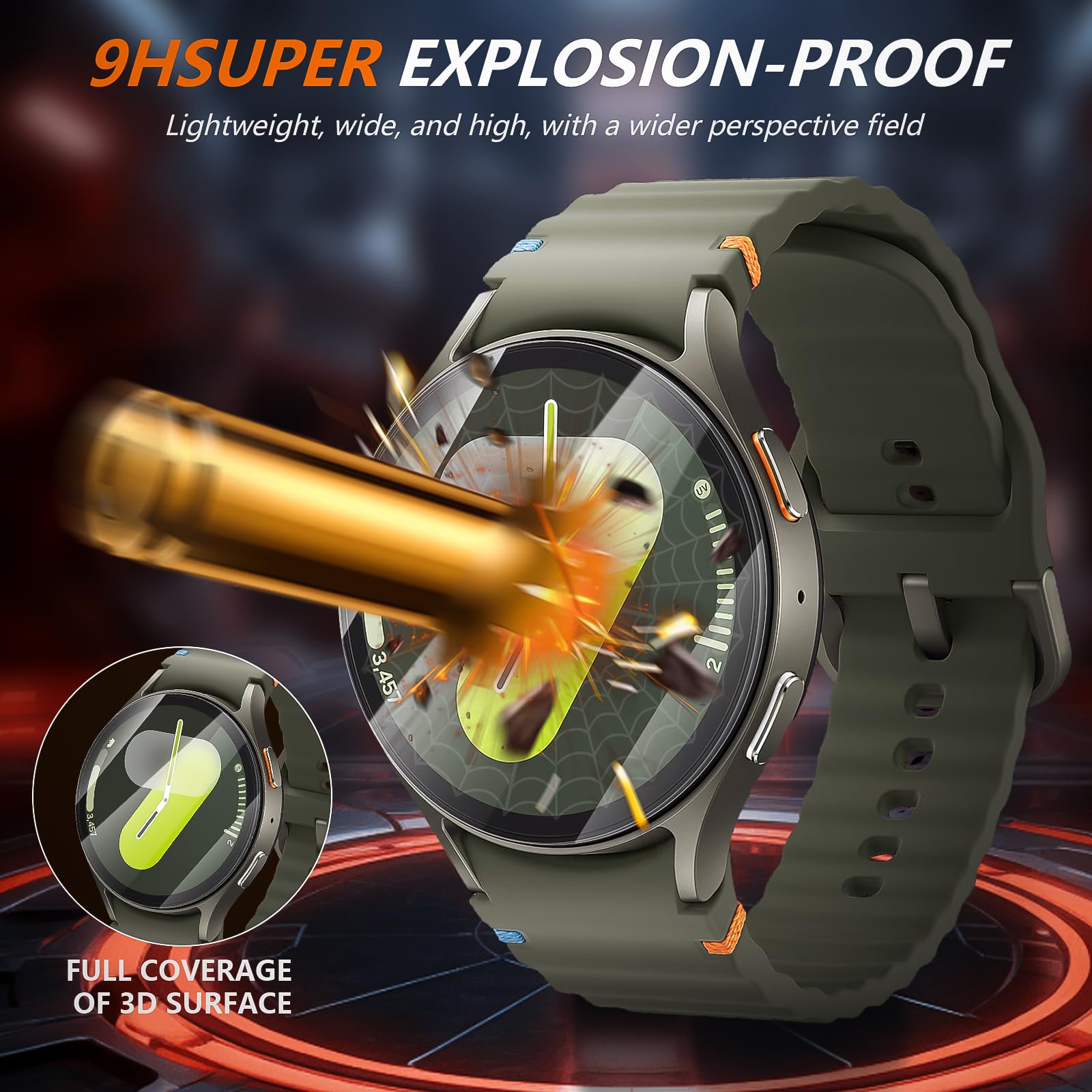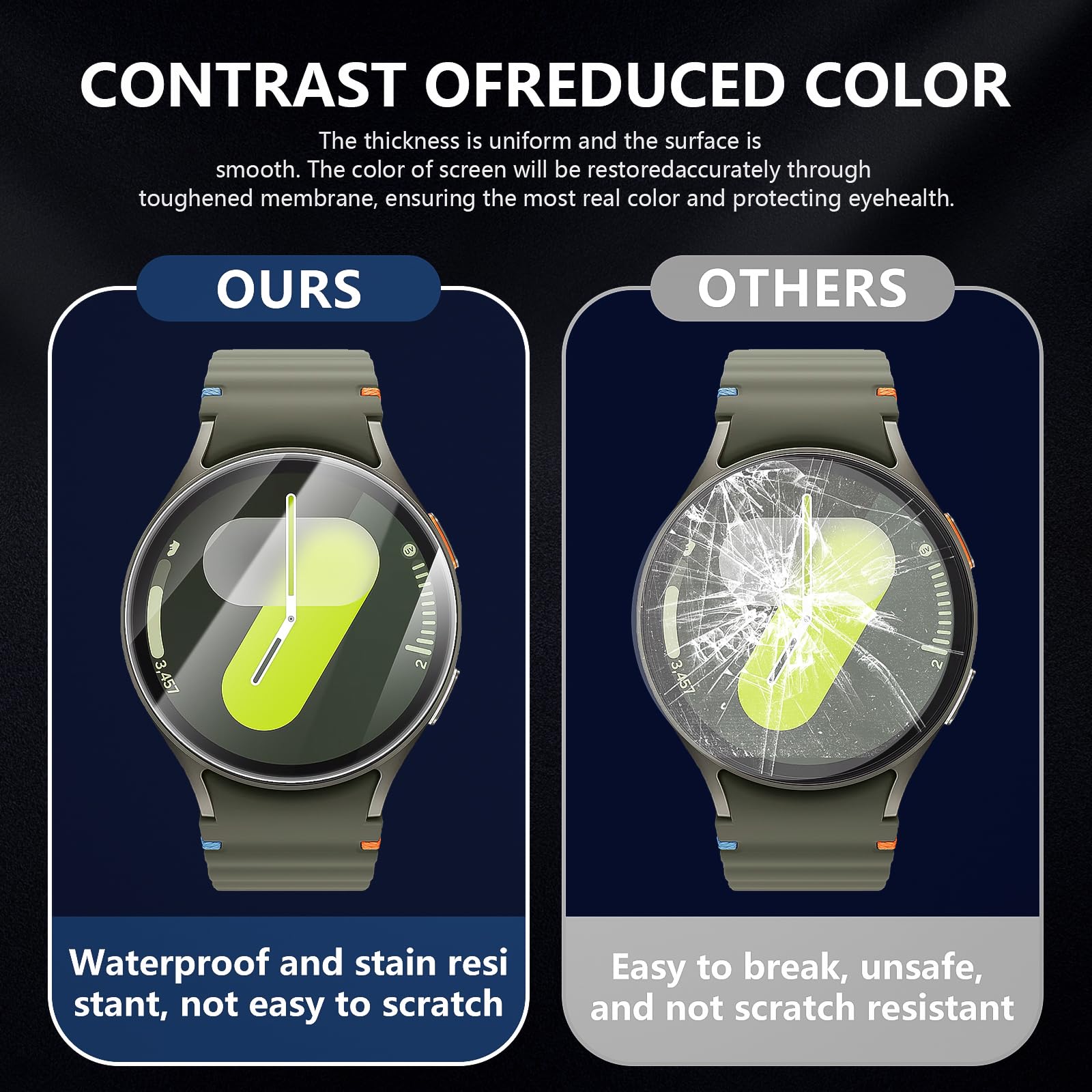 [超高透明性]For Samsung Galaxy Watch 7/6/5/4 44mm保護フィルムにはガラス素材を使用し、高い透明度と超低反射、99%の高い透過率、時計の本物の色を示しています。