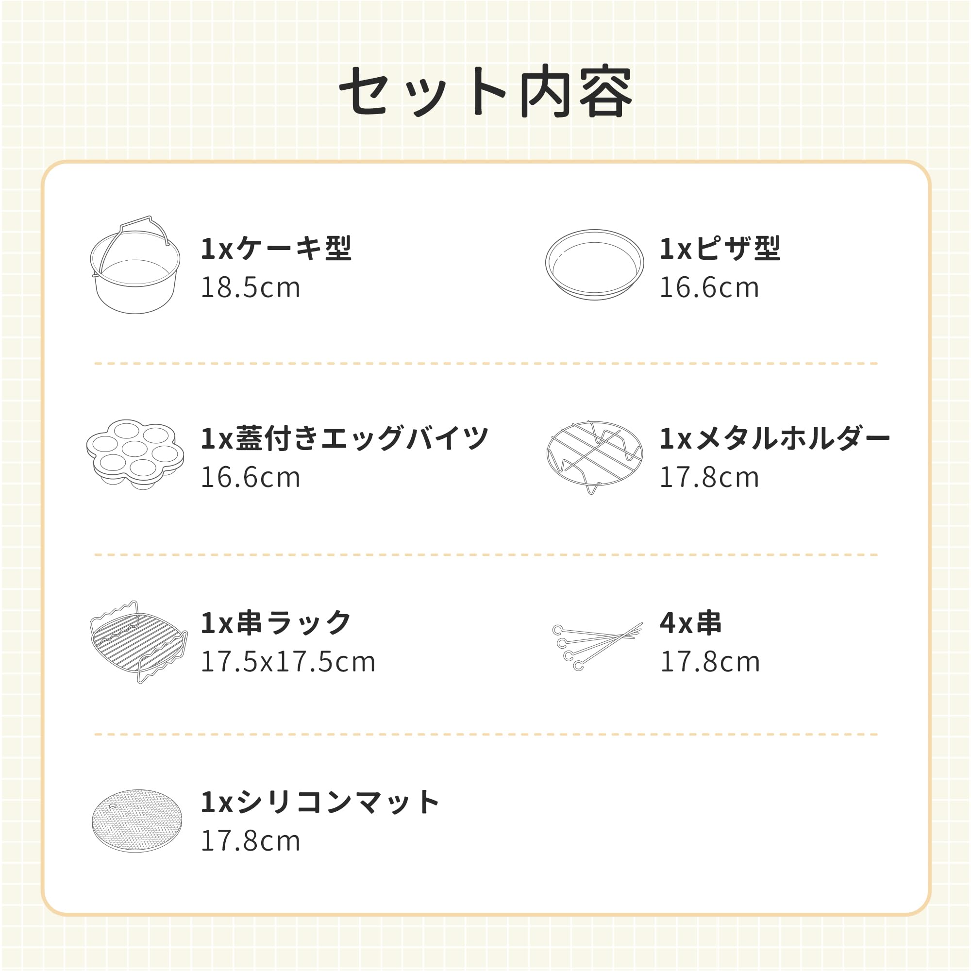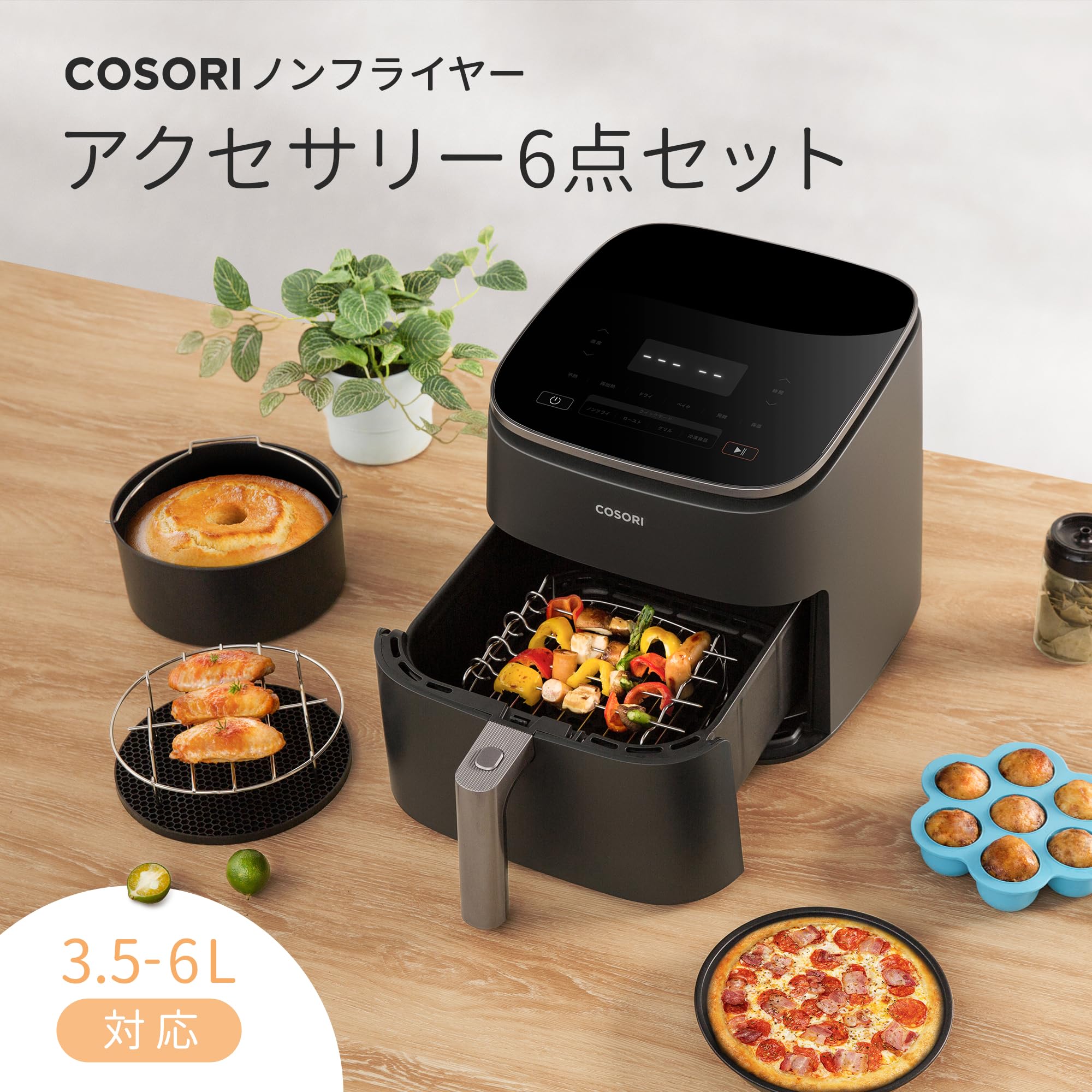 【在庫処分】COSORI ノンフライヤー アクセサリー ノンフライヤー レイヤー 3.5L-5Lの全範囲のエアフライヤー対応 BPAフリー材質 耐熱 ケーキ 唐揚げ ピザ 串揚げ 6個セット ケーキ型 ピザ型 蓋付きエッグバイツメタルホルダー シリコンマット 串ラック エアーオーブン1-4人に適用 C137-6AC | GIGATERA