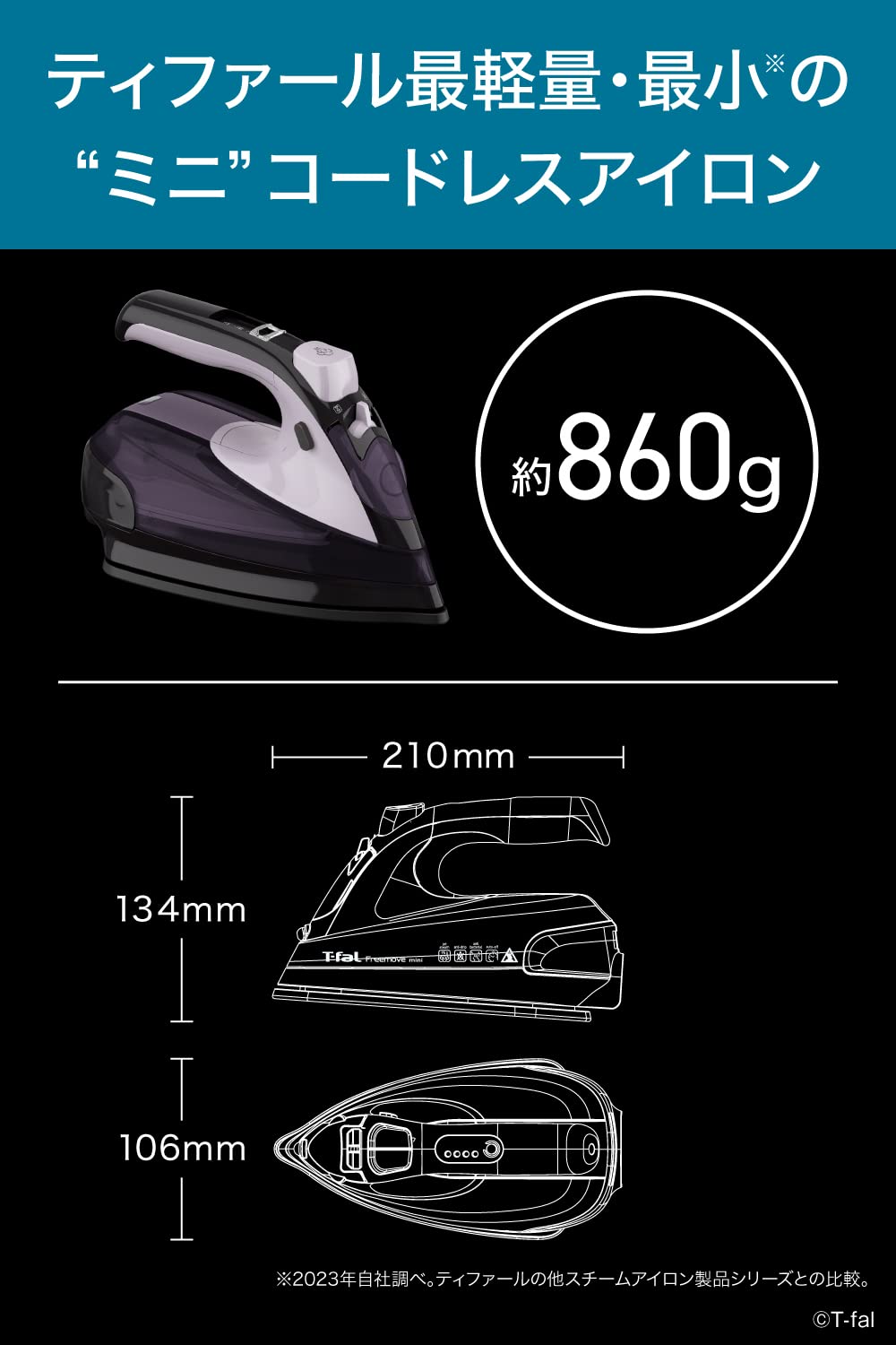 【数量限】ティファール コードレス スチームアイロン (ジェットスチーム 最大80g/分) 最短30秒立ち上がり フッ素樹脂かけ面 かけたまま「フリームーブ ミニ」 FV6111J0
