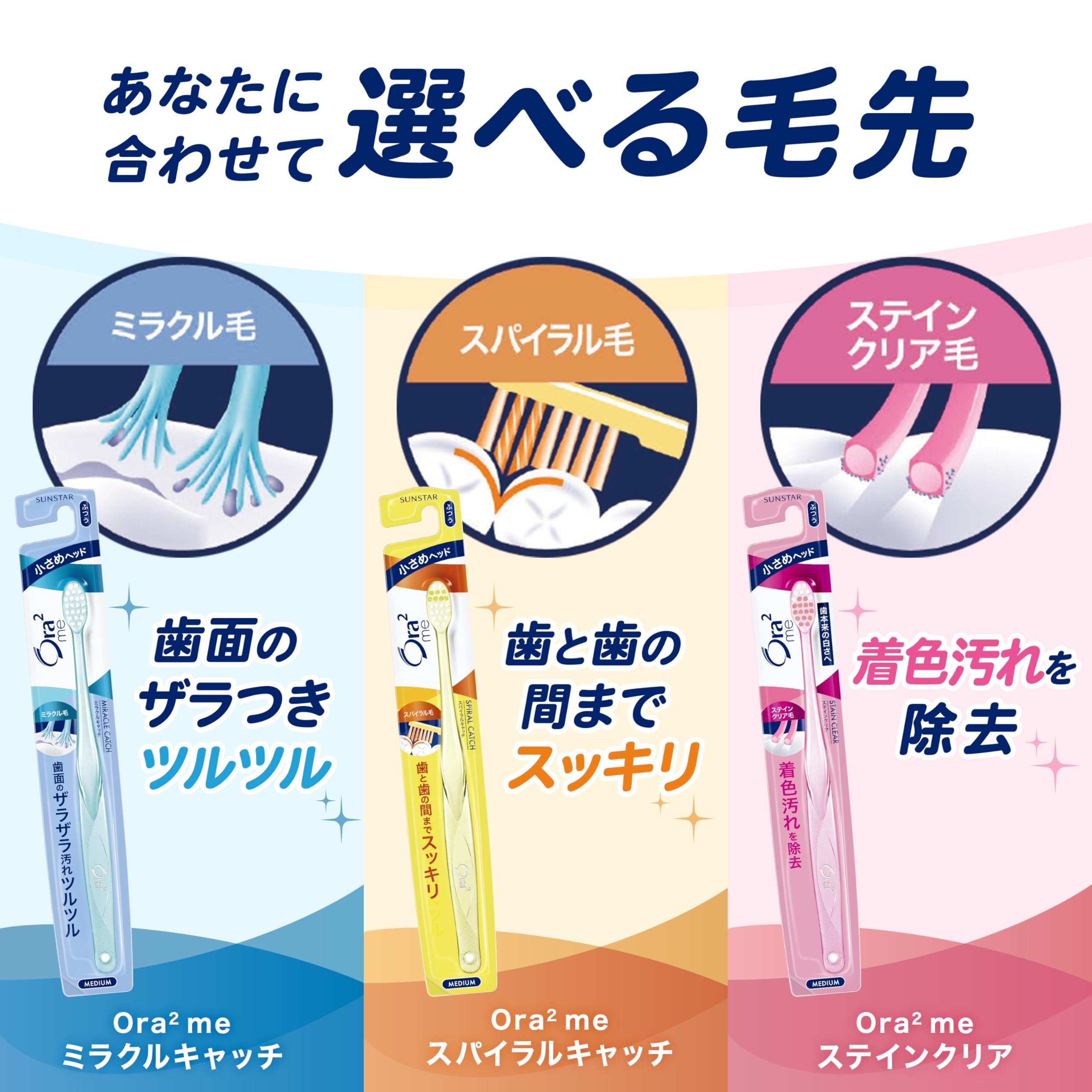 1本1本の毛先が細かく分割しているためやわらかく、歯やハグキにやさしい。