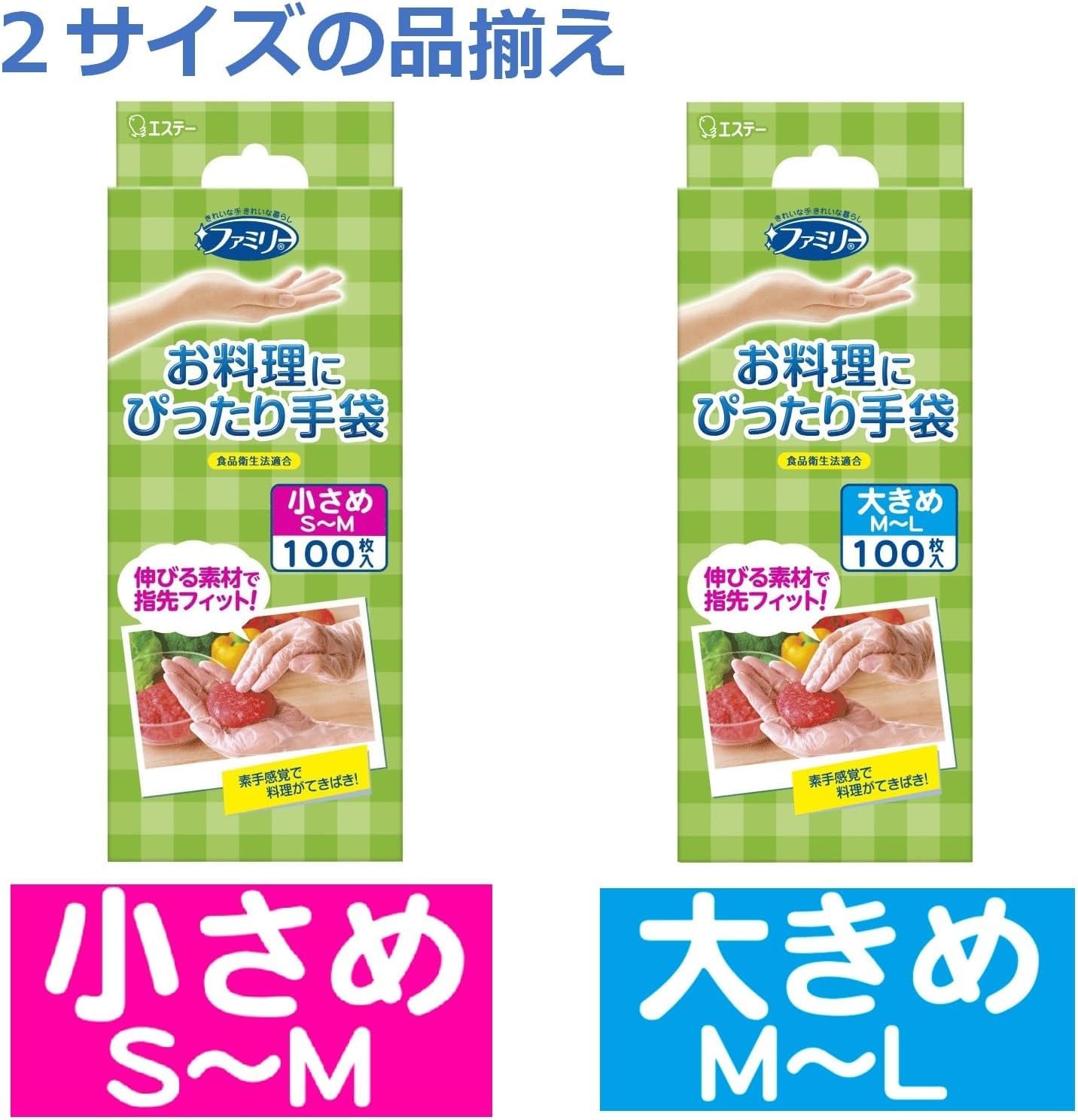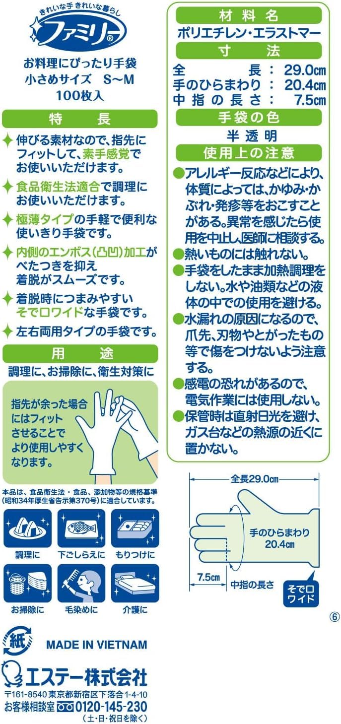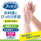 ファミリー お料理にぴったり 手袋 小さめ S~Mサイズ 半透明 100枚 内エンボス(凸凹)加工 左右両用タイプ 食品衛生法適合 調理 掃除 使い捨て